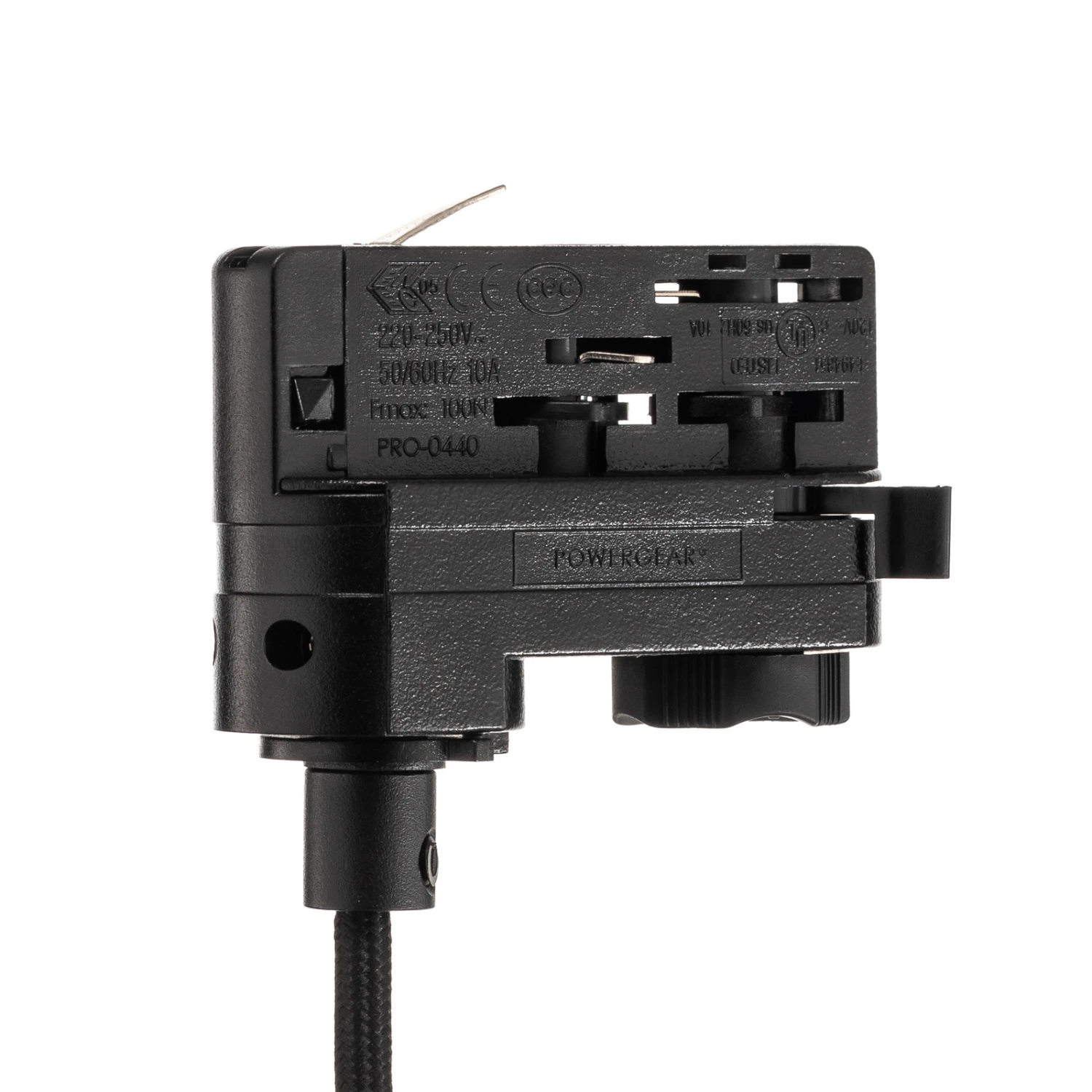 Runde Hängeleuchte Heleni in schwarz-goldenem Farbkontrast für ein 3-Phasen-Schienensystem