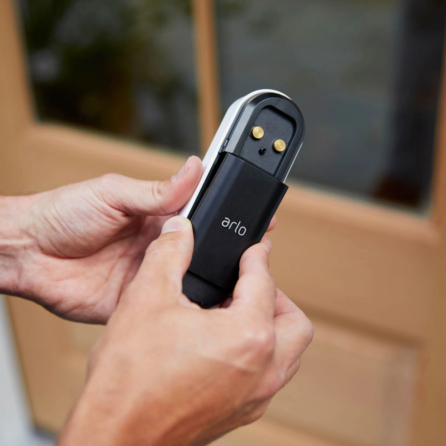 Ganz in Schwarz zeigt sich der wiederaufladbare Ersatz-Akku für die Arlo Essential Video-Türklingel. Er besteht aus Kunststoff und ermöglicht als Reserve den schnellen Wechsel des Akkus der Essential Türklingel ohne Ladezeit. So bleibt die Sicherheit im Eingangsbereich gewährleistet.