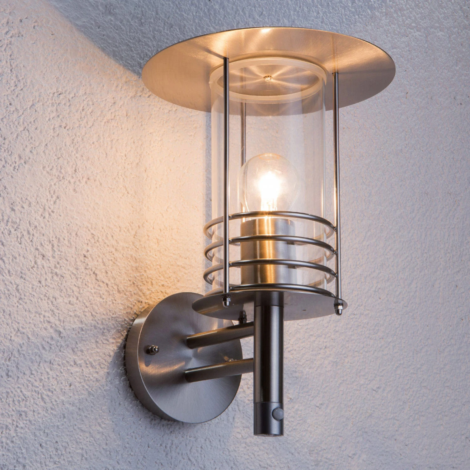 Zeitgemäße Bewegungssensor-Außenwandleuchte Miko aus Edelstahl
