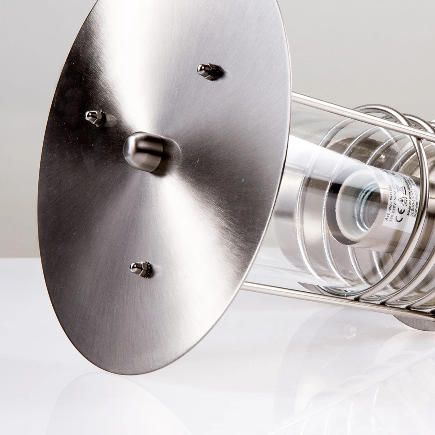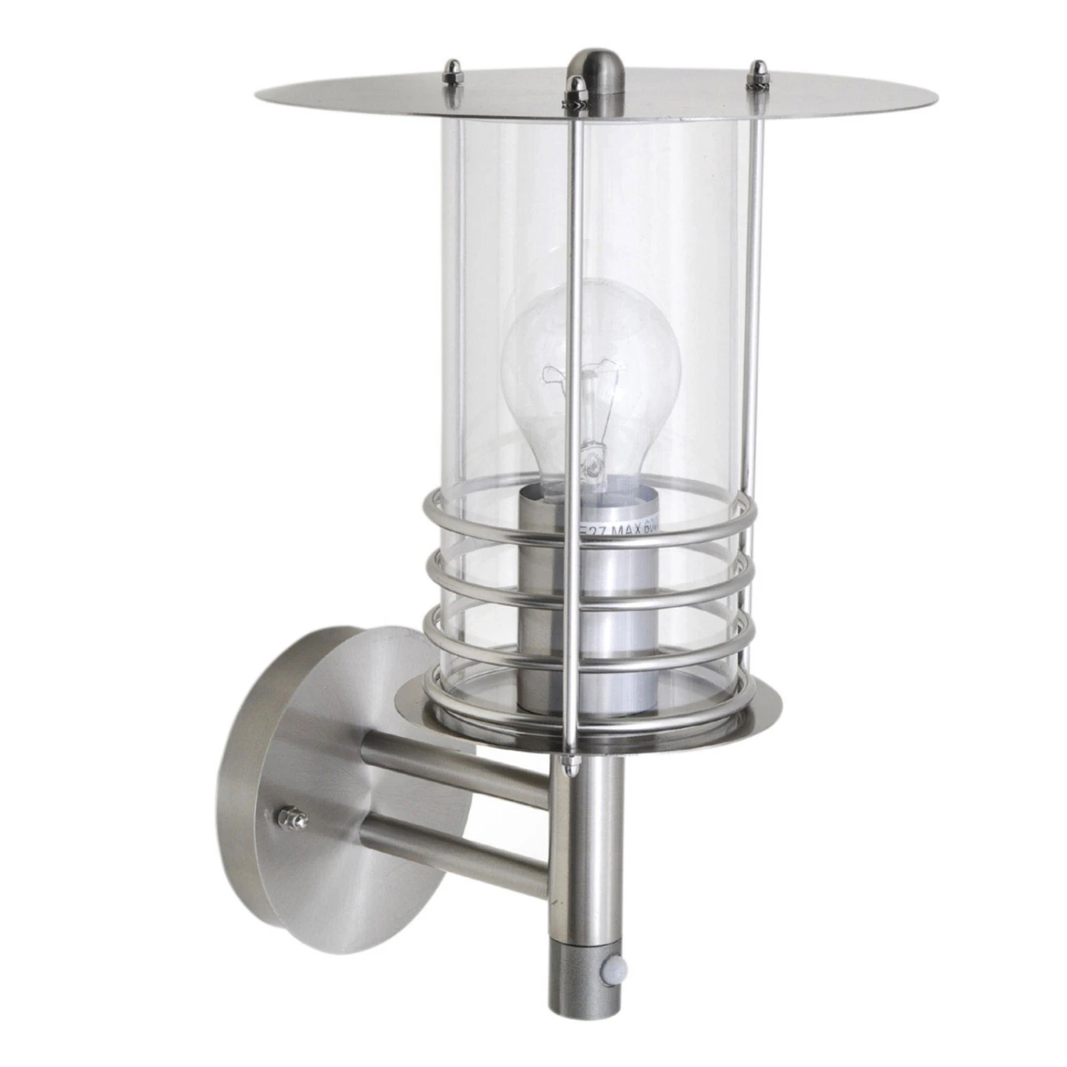 Miko wirkt zwar modern, das heißt aber nicht, dass die Bewegungssensor-Außenwandleuchte total puristisch gestaltet worden ist. Im Gegenteil, sie kann mit einen paar schönen Details aufwarten. Das Edelstahldach ist ganz flach gehalten und weiter unten am Schirm schmücken drei Ringe das Gesamtdesign. Durch den klaren Diffusor ist der Blick auf das frei wählbare E27-Leuchtmittel frei und von der Leuchtkraft geht nichts verloren.