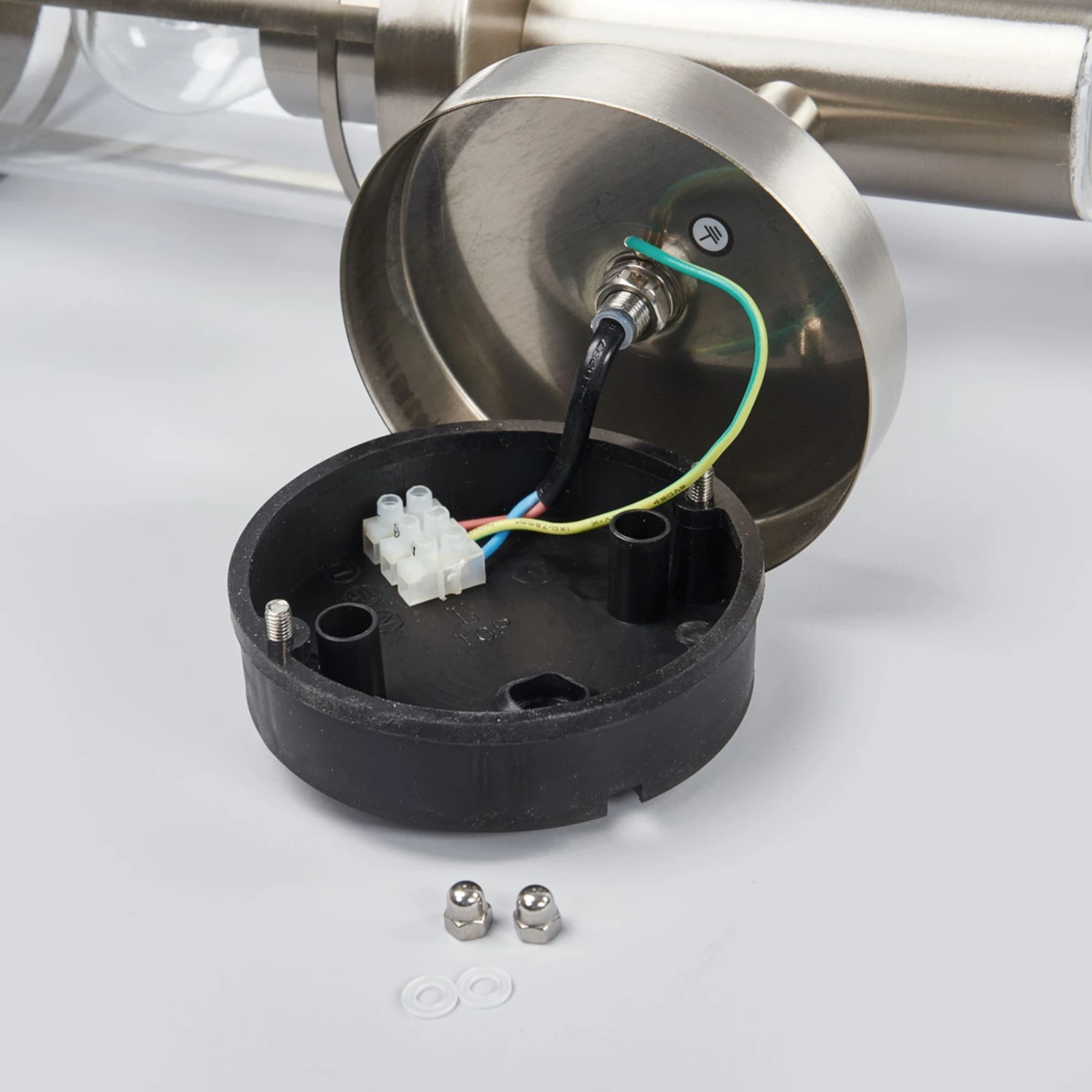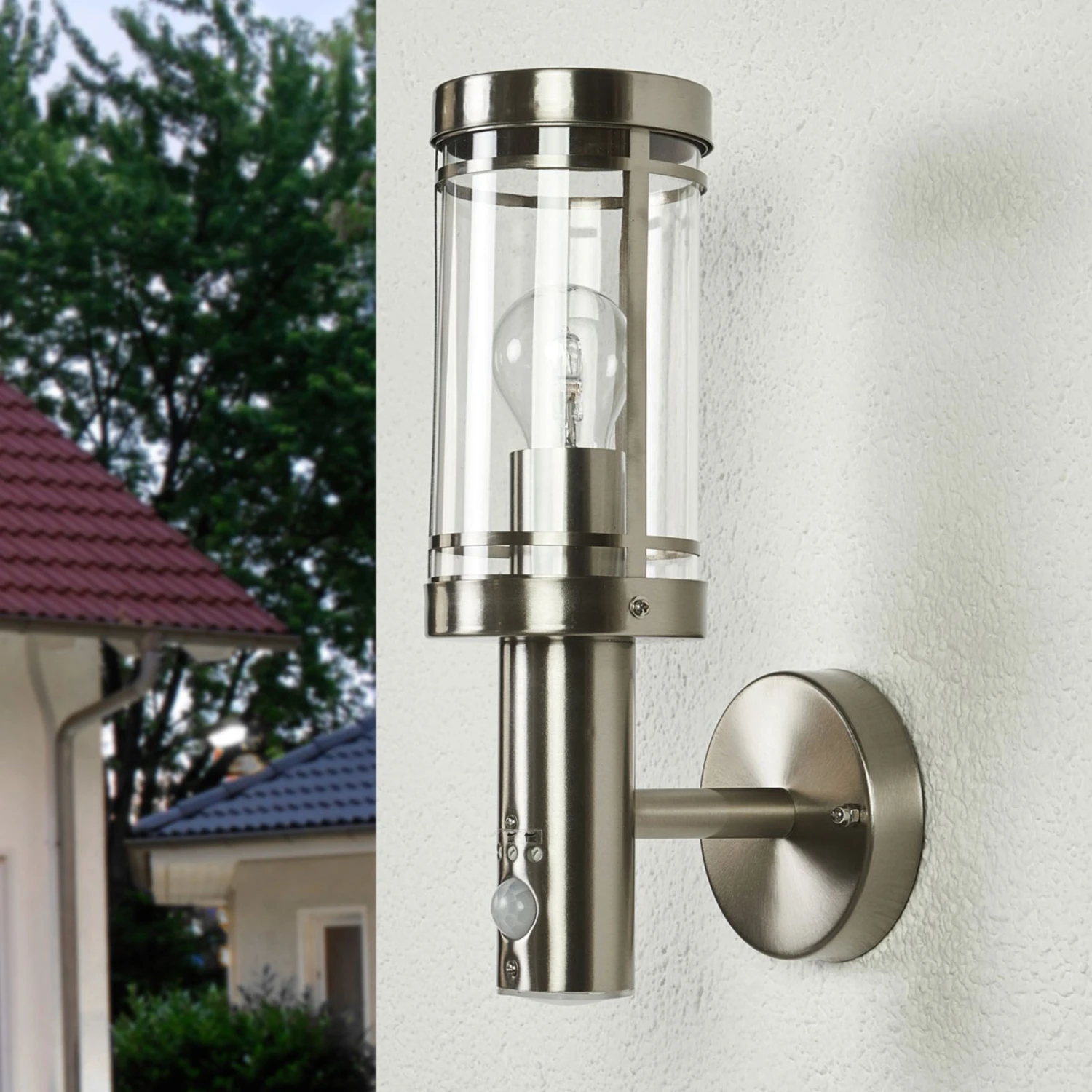 Das Gestell der Wandlampe mit Sensor besteht durchweg aus rostfreiem Edelstahl und erscheint recht modern. Der Einsatz rund um das Leuchtmittel besteht aus klarem Kunststoff und garantiert somit volle Leuchtkraft.