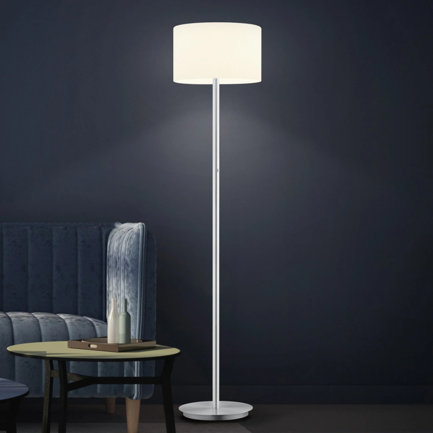 Eine zeitlose, elegante Leuchte für viele Einrichtungsstile ist die LED-Stehleuchte Grazia von BANKAMP, die aus einem runden Fuß und Gestell in schlichter Form und einem zylindrischen, oben geschlossenen Schirm aus opalweißem Glas besteht. Moderne LED-Technik sowie die Funktion „dim to warm“ machen die Stehleuchte zu einer zeitgemäßen Leuchte, die variable Beleuchtung bietet. Über den integrierten Tastdimmer kann die Helligkeit der Leuchte verändert werden. Je weiter das Licht gedimmt wird, desto wärmer und behaglicher wird die Lichtfarbe (2.700 K – 2.200 K). Hervorzuheben ist der gute Farbwiedergabeindex der Beleuchtung. Mit einem Wert von Ra >90 erzeugen die verbauten LEDs ein Licht, in dem alle Farben sehr natürlich erscheinen.