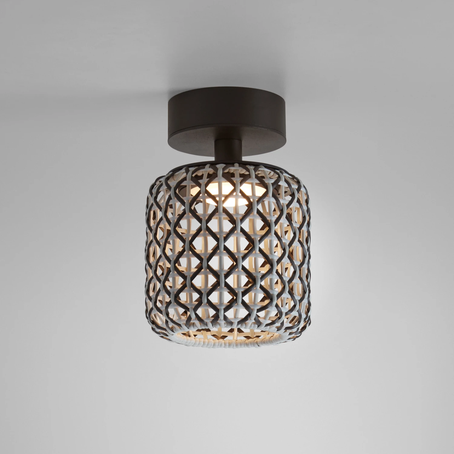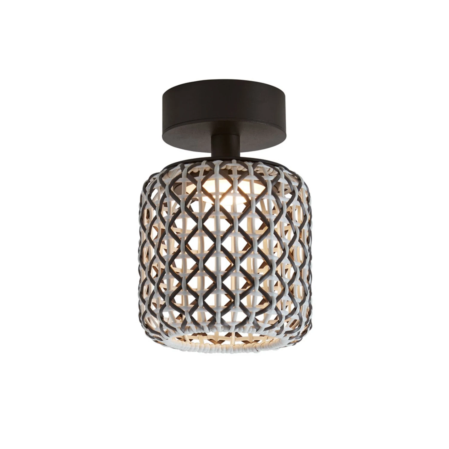 Die Deckenleuchte Nans hat einen Schirm aus einem Flechtgewebe, das aus synthetischen Fasern besteht. Die Schutzart IP54 schützt die Leuchte vor Feuchtigkeit und Staub, so dass sie problemlos im Außenbereich, also in Pavillons, auf der Terrasse oder dem Balkon einsetzbar ist.