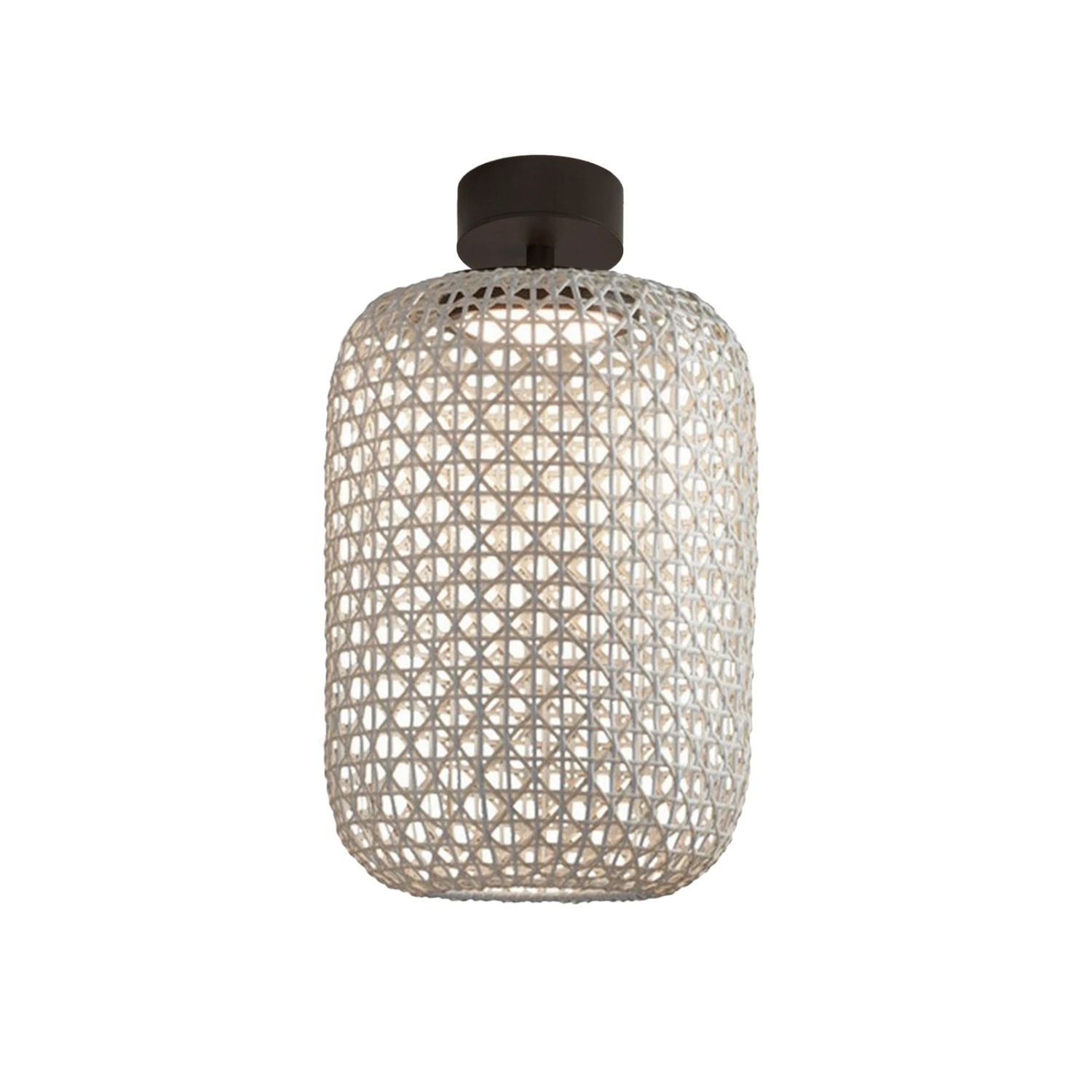 Die Deckenleuchte Nans hat einen Schirm aus einem Flechtgewebe, das aus synthetischen Fasern besteht. Die Schutzart IP54 schützt die Leuchte vor Feuchtigkeit und Staub, so dass sie problemlos im Außenbereich, also in Pavillons, auf der Terrasse oder dem Balkon einsetzbar ist.