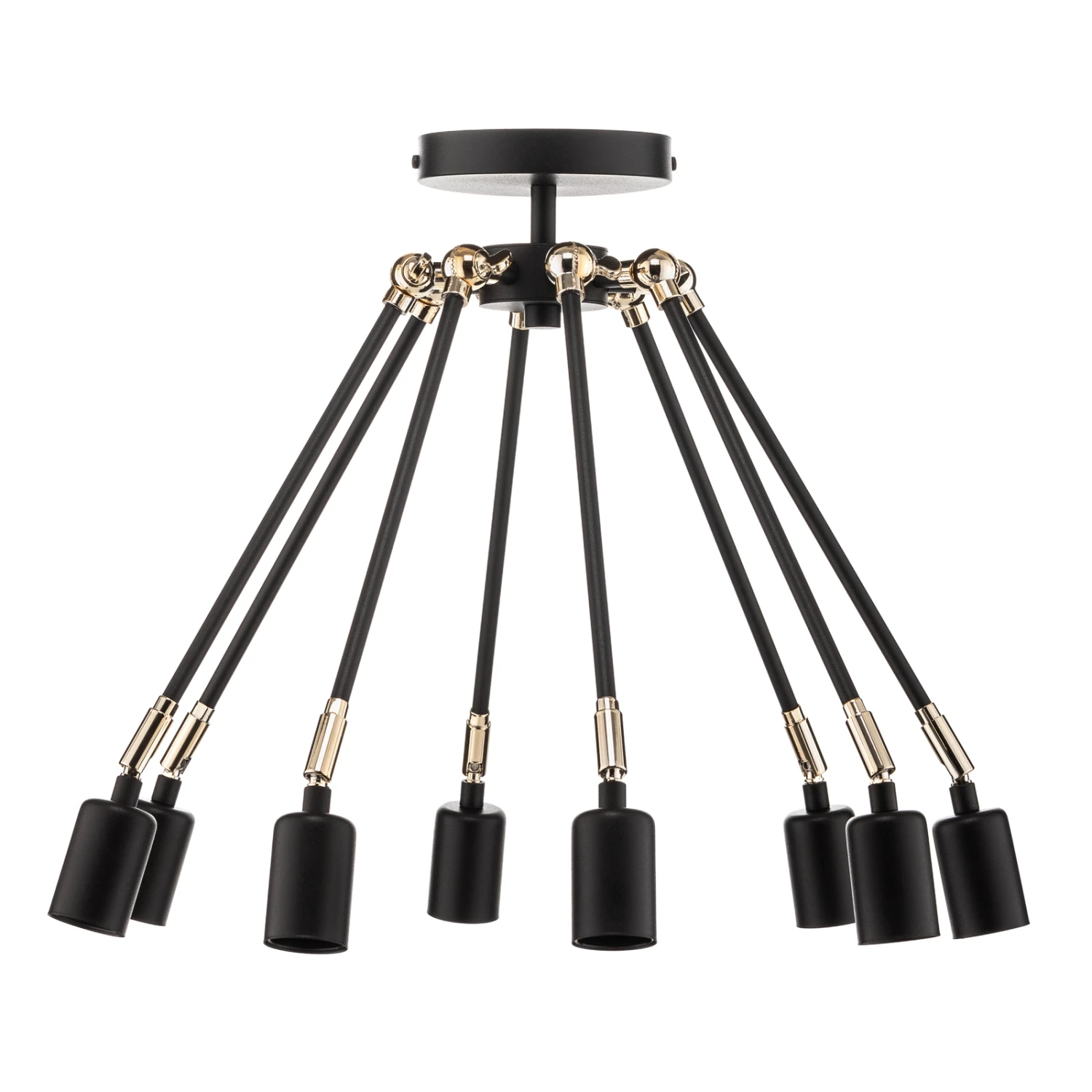Schwarze Deckenlampe Stik mit individueller Lichtausrichtung- achtflammig