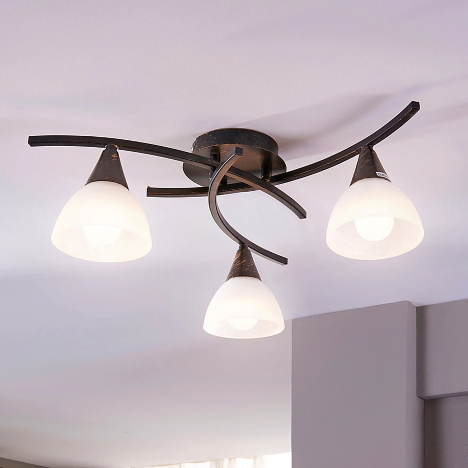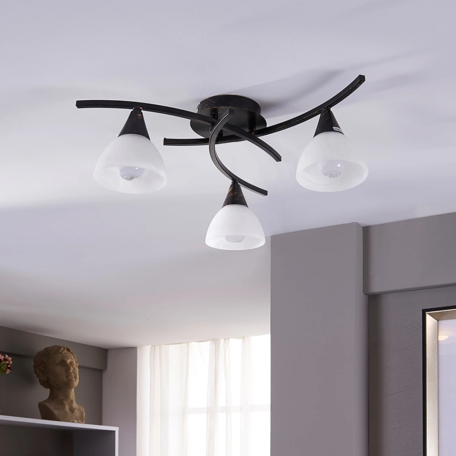 Formschöne Deckenlampe Della mit alabasterfarbenen Gläsern