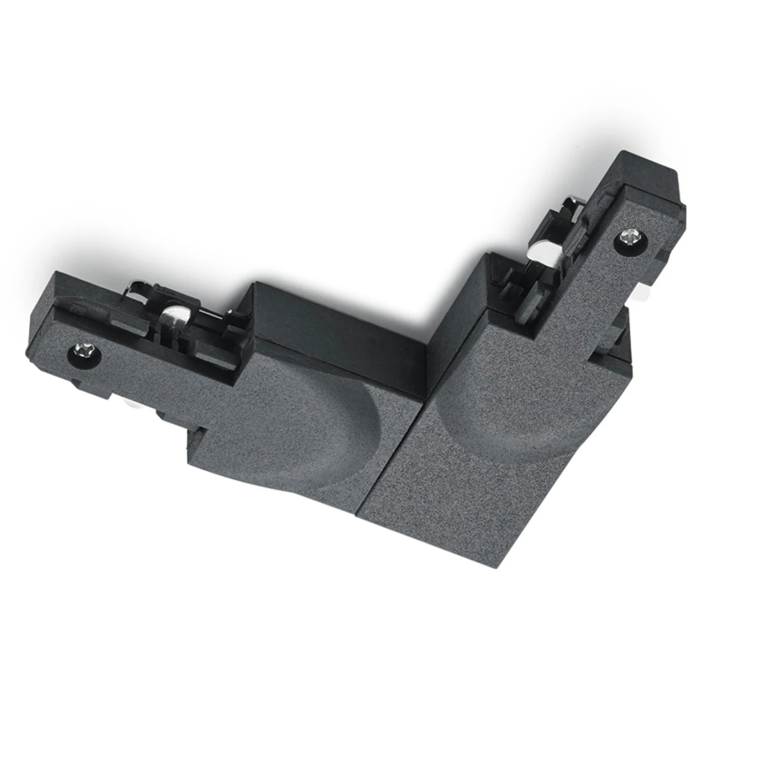 Eckverbinder DUOline für 2-Phasen-Schienensystem, Schutzleiter außen Um zwei Schienen des DUOline für 2-Phasen-Systems im rechten Winkel miteinander zu koppeln, steht dieser Eckverbinder zur Verfügung. Unterschiedliche Farbvarianten ermöglichen die optisch passende Kombination mit den Schienen.