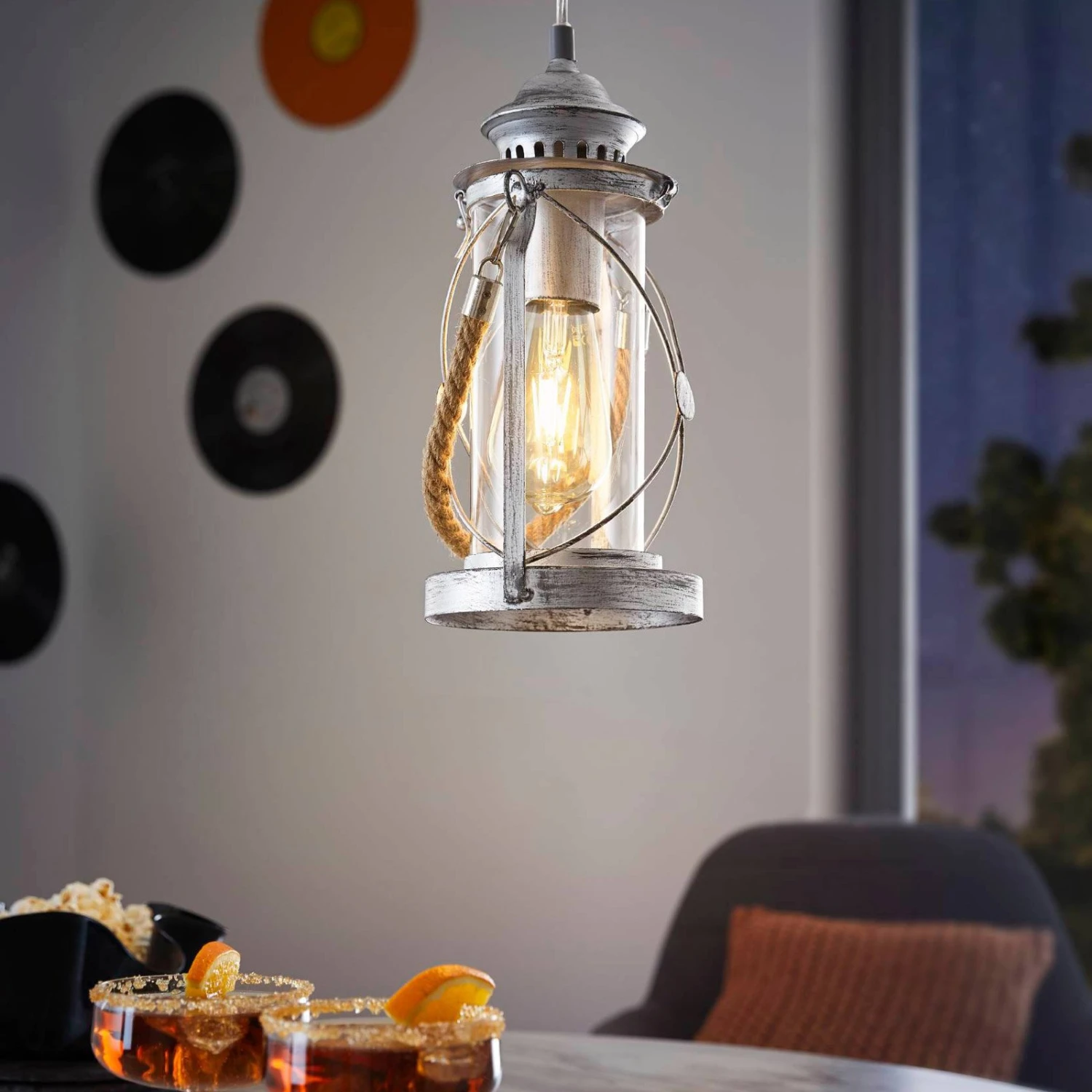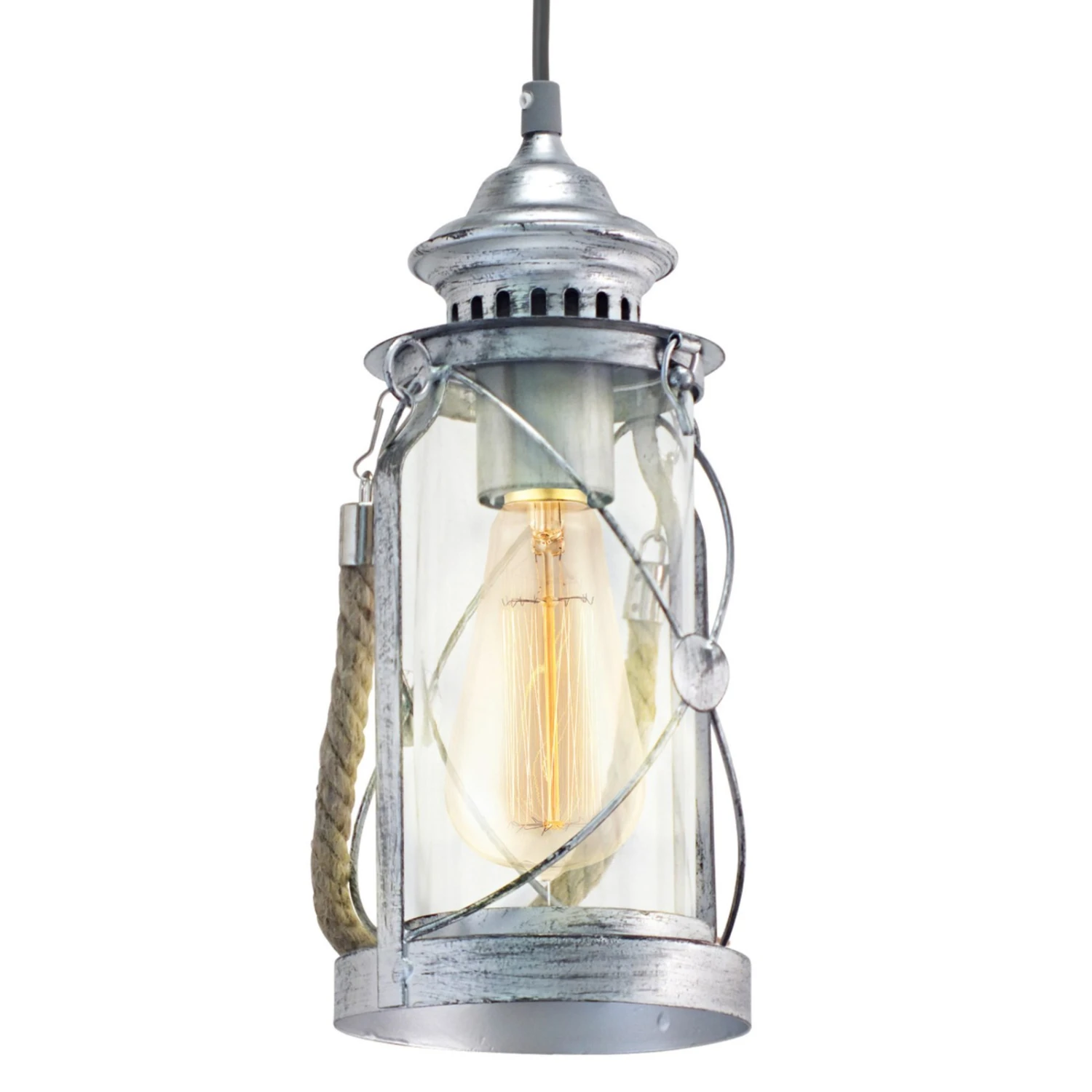 Die Hängeleuchte Fedor in Laternenform unterstreicht mit stimmungsvoller Beleuchtung einen nostalgisch inspirierten Einrichtungsstil, denn das Licht des Leuchtmittels wird durch das klare Glas ungehindert abgestrahlt. Als schmückendes Detail wurde die Laterne auch noch mit einer Kordel versehen.