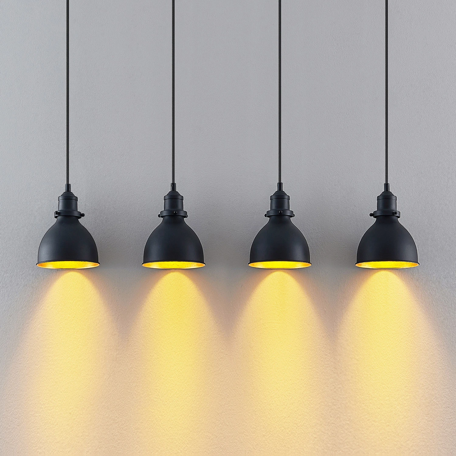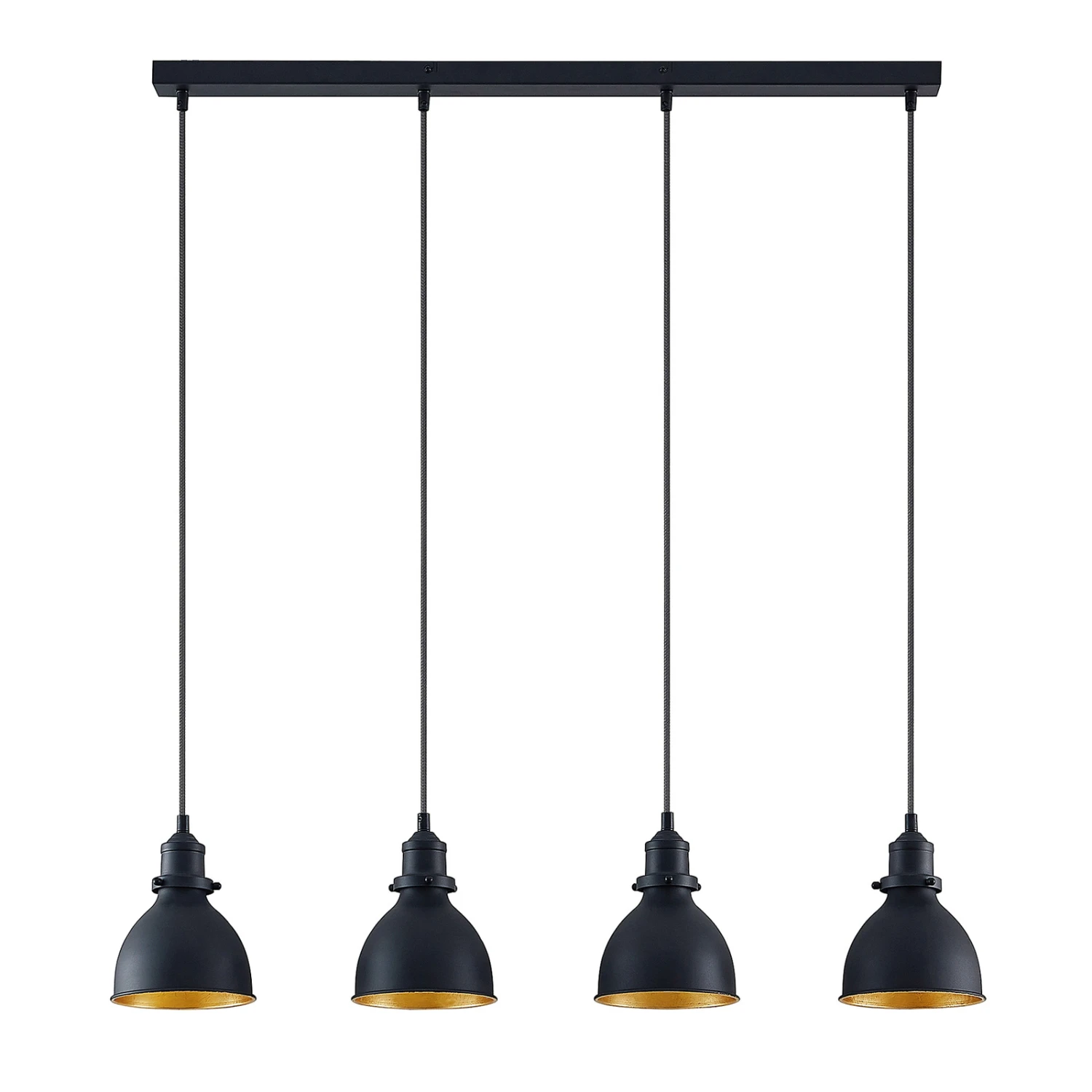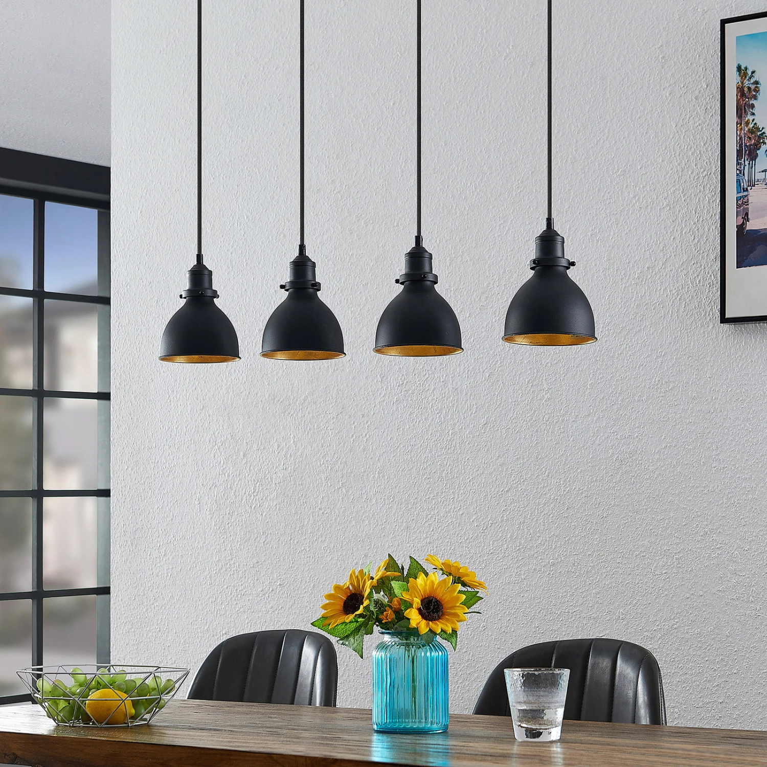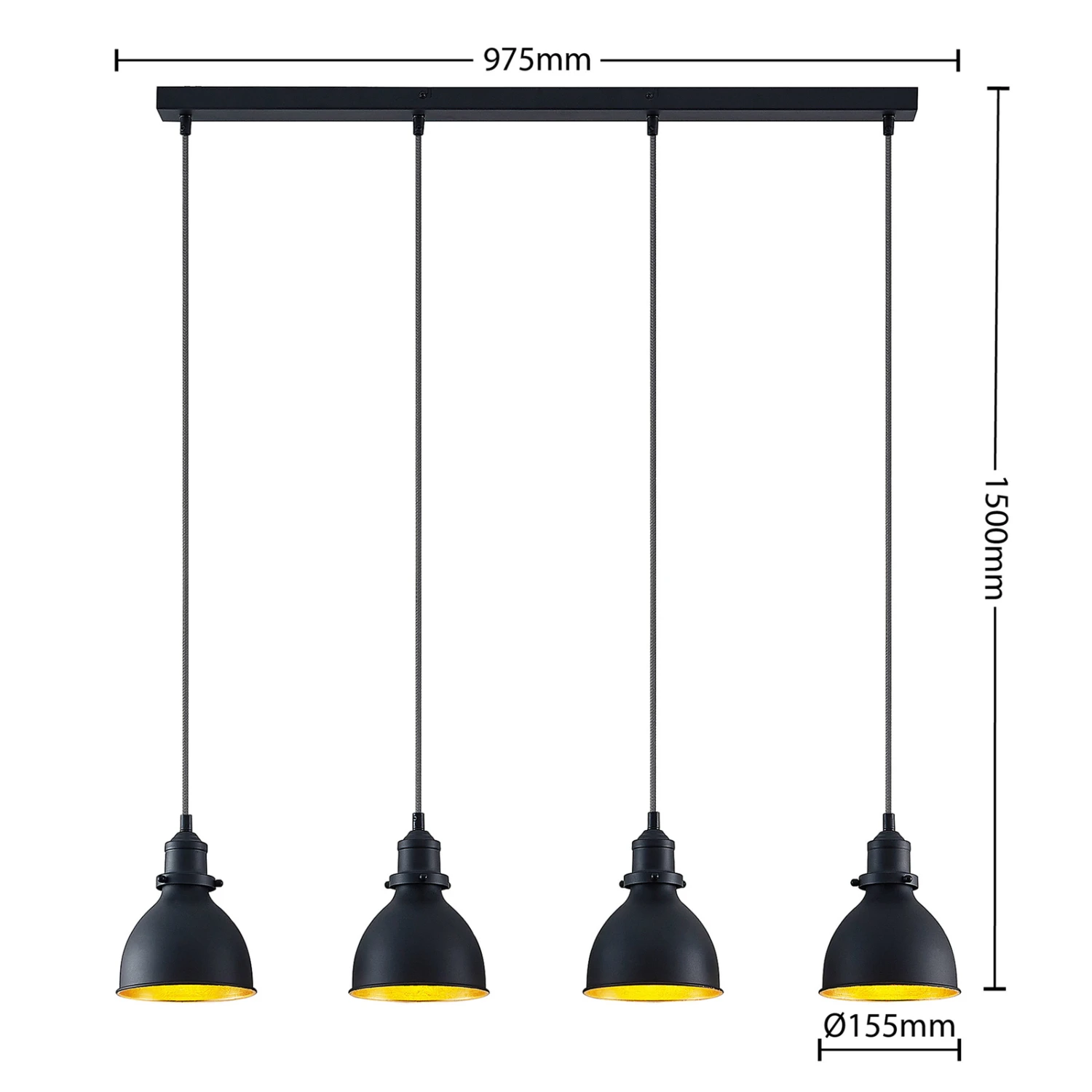 Vierflammige Hängeleuchte Doskali mit schwarz-goldenen Leuchtenschirmen