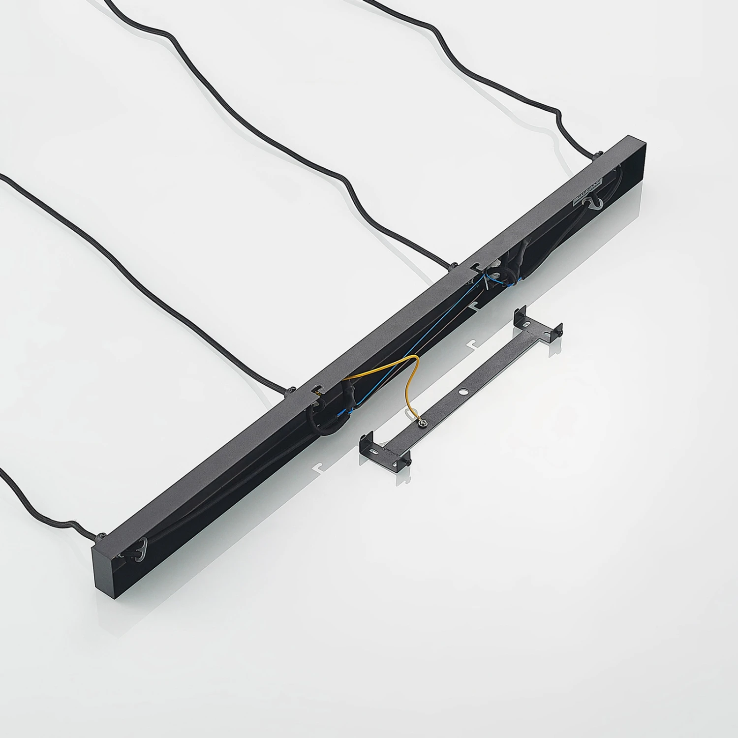 Die Hängeleuchte Doskali wurde gänzlich aus Eisen hergestellt und kommt in einer vierflammigen Ausführung daher, die eine gute Ausleuchtung erlaubt. Sie eignet sich hervorragend als Beleuchtung über dem Esszimmertisch oder über der Küchentheke und bietet eine direkte Abstrahlung nach unten ohne zu blenden. Das Besondere dieser Leuchte sind die mit einem schwarzen Oberflächenfinish überzogenen Schirme, die an den industriellen Look erinnern und innen golden foliert sind. Dies hat den Effekt, dass der Lichtschein dadurch besonders warm und gemütlich wird und auf diese Weise zu einer wohligen Atmosphäre beiträgt.