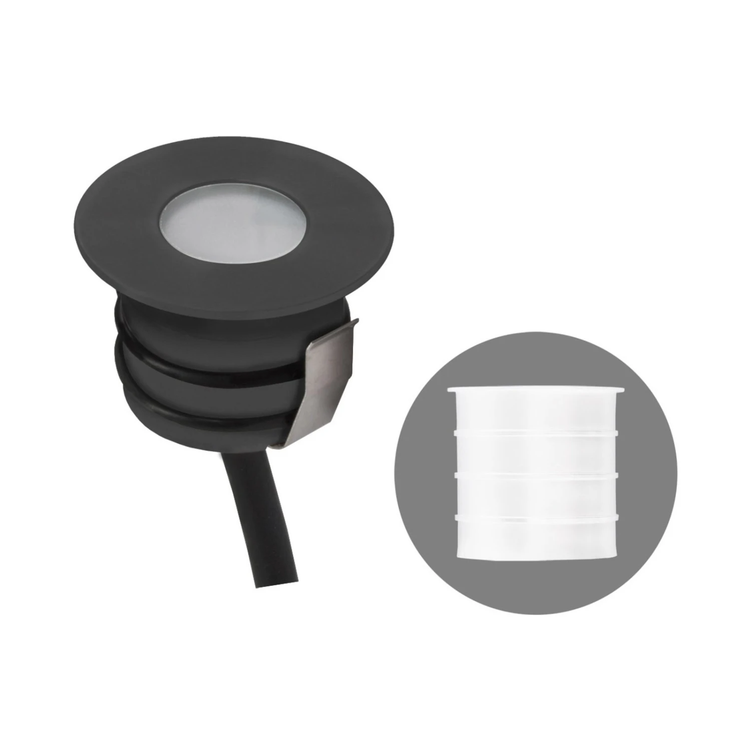 Ein LED-Modul ist integriert und erzeugt warmweißes Licht, das dank der opalweißen Abdeckung aus Glas blendfrei abgegeben wird. Das Gehäuse an sich wird aus Aluminium hergestellt, während die Blende aus V2A-Edelstahl besteht. Ein Einbautopf aus Kunststoff ist im Lieferumfang enthalten, wird dieser verwendet, beträgt der Einbaudurchmesser 4 cm.