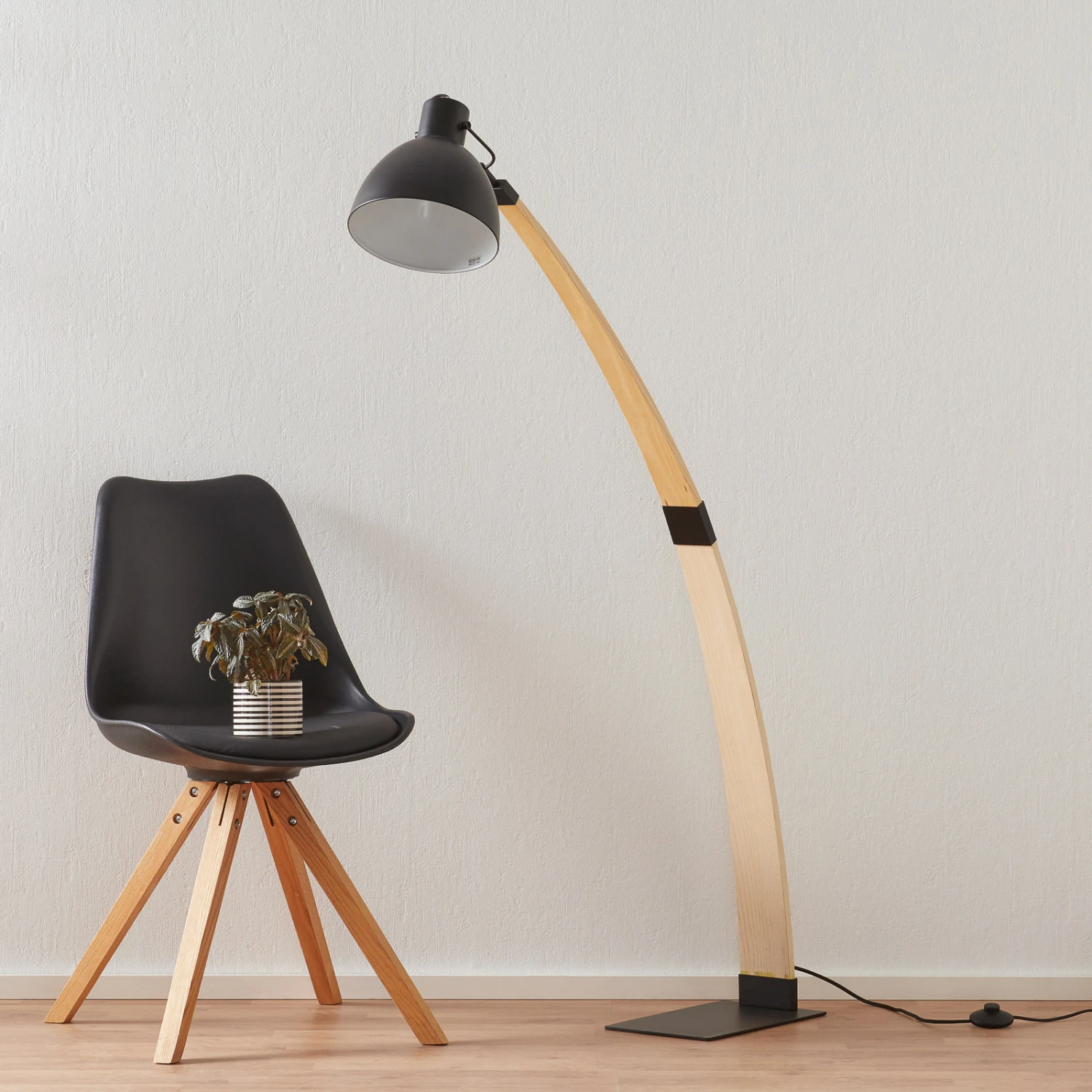Beim Anblick der Stehleuchte Curf werden sofort Assoziationen zu Leichtigkeit und Frische geweckt. Das Design der Leuchte ist grazil und durch den Körper aus hellem Holz wirkt sie natürlich und naturverbunden. Lampenschirm, Fuß und das mittig platzierte Highlight aus Metall verleihen der Leuchte Modernität. Der Lampenschirm hat eine angenehme Größe ohne aufdringlich zu wirken.