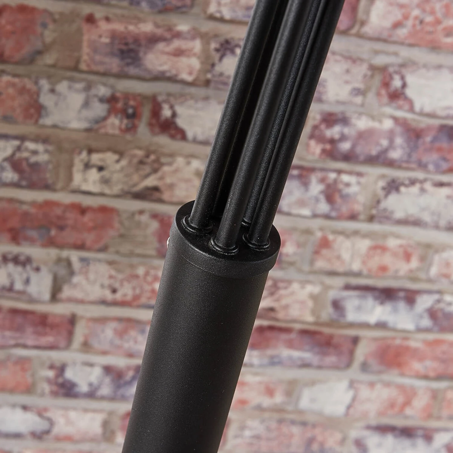 Diese Stehlampe entbehrt durchaus nicht rustikaler Elemente oder zumindest solcher, die Assoziationen zum Vintagelook aufkommen lassen, denn die Form der Schirme erinnert an Lichtspender, wie man sie auch vor Jahrzehnten schon gekannt hat.