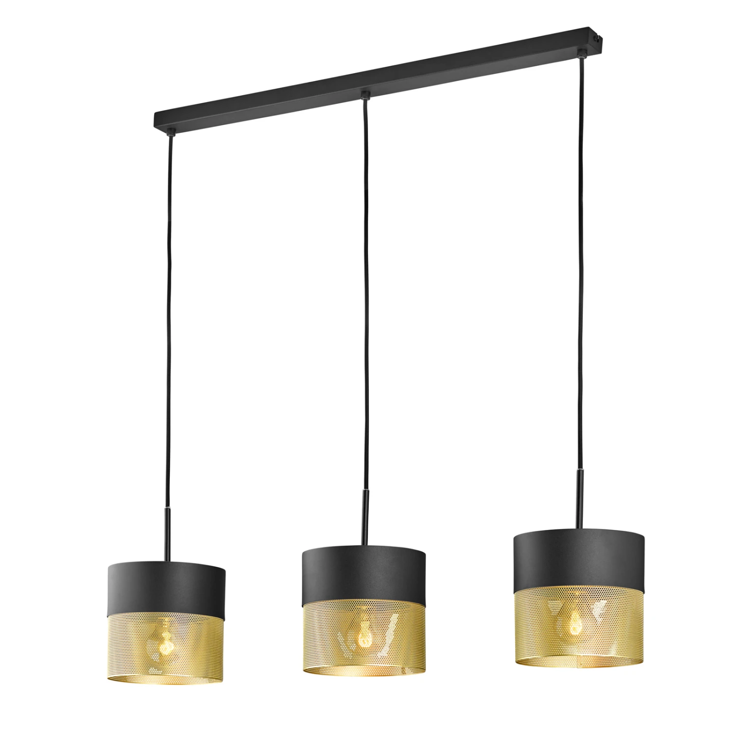 Vom langen Deckenbalken der Hängeleuchte Mesh hängen drei Schirme ab, die im oberen Bereich aus geschlossenem, im unteren aus gelochtem Aluminium bestehen. Die Leuchte ist hervorragend zur Beleuchtung eines langen Esstischs oder auch einer Theke geeignet, auch im gewerblichen Bereich. Durch das gelochte Material ist das Leuchtmittel zu sehen und es wird eine sanfte Lichtabstrahlung in den Raum hinein gewährleistet, während die Fläche unterhalb der Schirme direkt beleuchtet wird.