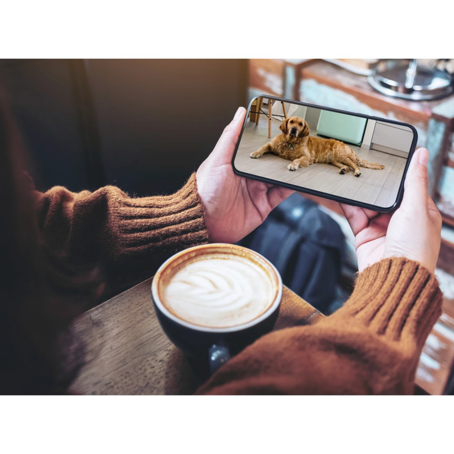 Das Videobild kann direkt über die kostenfreie App betrachtet oder aufgezeichnet werden. Die Aufzeichnung ist per Cloud (kostenpflichtig) oder über den eingebauten SD-Karten-Slot (SD-Karte nicht enthalten) möglich. Hierbei lässt sich auch die Videoqualität einstellen: Full-HD-Qualität für besonders klare Aufnahmen oder SD-Qualität (360 x 640 Pixel), um bis zu 180 Tage via SD-Karte aufnehmen zu können.