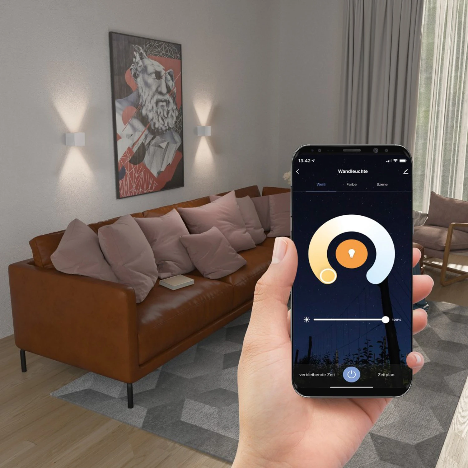 Kommt ohne Gateway aus: Smart steuerbare LED-Wandleuchte WLAN, Up- & Downlight, CCT, dimmbar