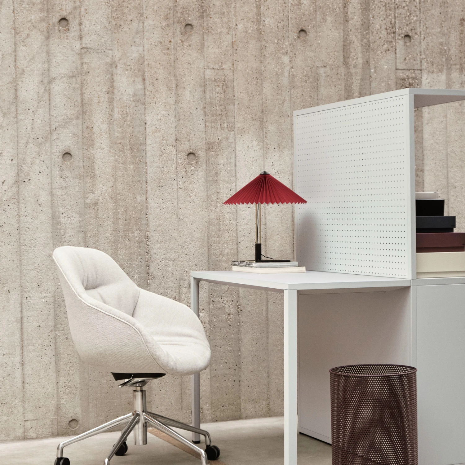 Die LED-Tischleuchte Matin ist ein Entwurf der französischen Designerin Inga Sempé, die in der Leuchte ein zeitgemäßes und dennoch poetisches Design und visuelle Feinheit mit physischer Robustheit verbindet. Inga Sempé lebt und arbeitet in Paris und wurde bereits im Jahr 2007 mit dem Red Dot Design Award ausgezeichnet. Ihre Arbeiten sind bekannt für eine besondere Leichtigkeit, eine starke Persönlichkeit und eine besonders taktile Art, wie auch die Tischleuchte Matin 300 eindrucksvoll unter Beweis stellt. Das Gestell der Tischleuchte besteht aus einem gebogenen Stahldrahtrahmen in poliertem Messing mit schwarzen Details aus ABS-Spritzguss. Auf diesem sitzt ein Schirm in weiter Form aus plissierter Baumwolle in schönen Farben, die auf eine PVC-Folie laminiert wurde.