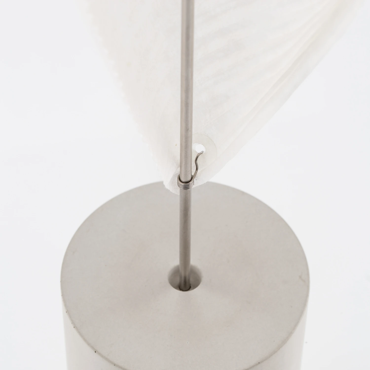 Der charakteristische Schirm der Wo-Tum-Bu 2 fußt auf einem massiven Betonsockel, der in starkem Kontrast zu dem dünnen Papierschirm steht. Unumstößlich und schwer gewährleistet er den sicheren Stand der Stehleuchte. Dennoch ist nicht nur der empfindliche Schirm mit äußerster Vorsicht zu behandeln, sondern auch der Betonfuß. Der Beton darf nicht mit Fetten, wie sie in Handcremes oder anderen Flüssigkeiten enthalten sind, in Berührung kommen, um Verfärbungen zu vermeiden. Die Leuchte ist außerdem unbedingt aus Räumen mit hoher Luftfeuchtigkeit fernzuhalten. Der Schirm darf keinesfalls feucht gereinigt werden. Es wird empfohlen, ihn lediglich mit einem Staubwedel oder einem Pinsel zu entstauben.
