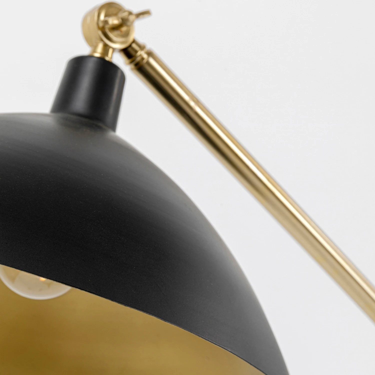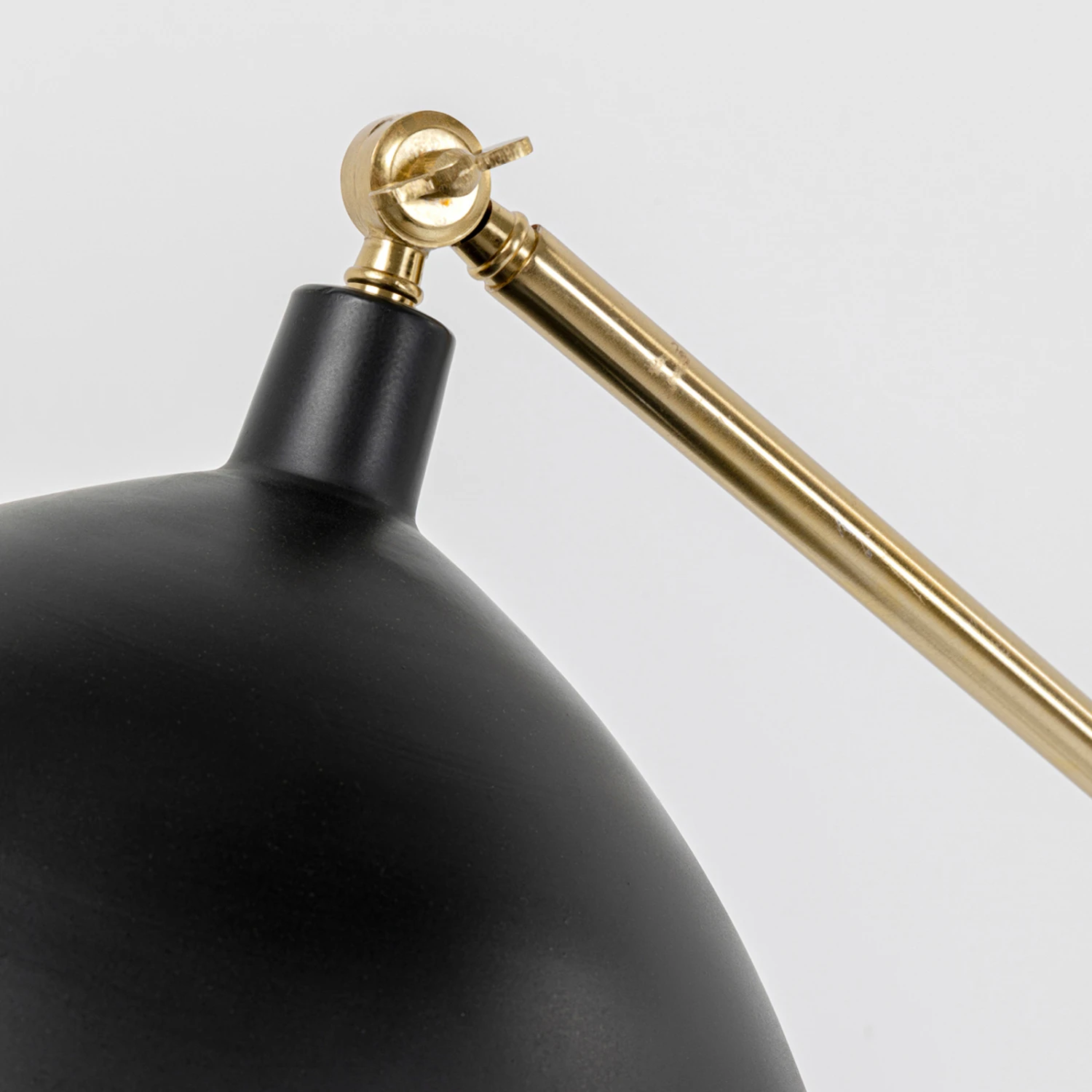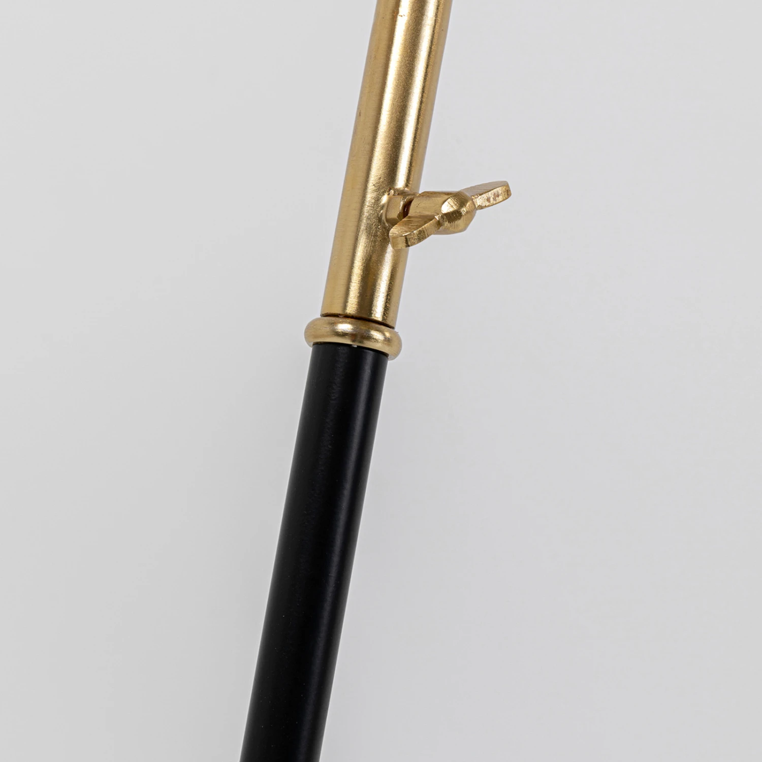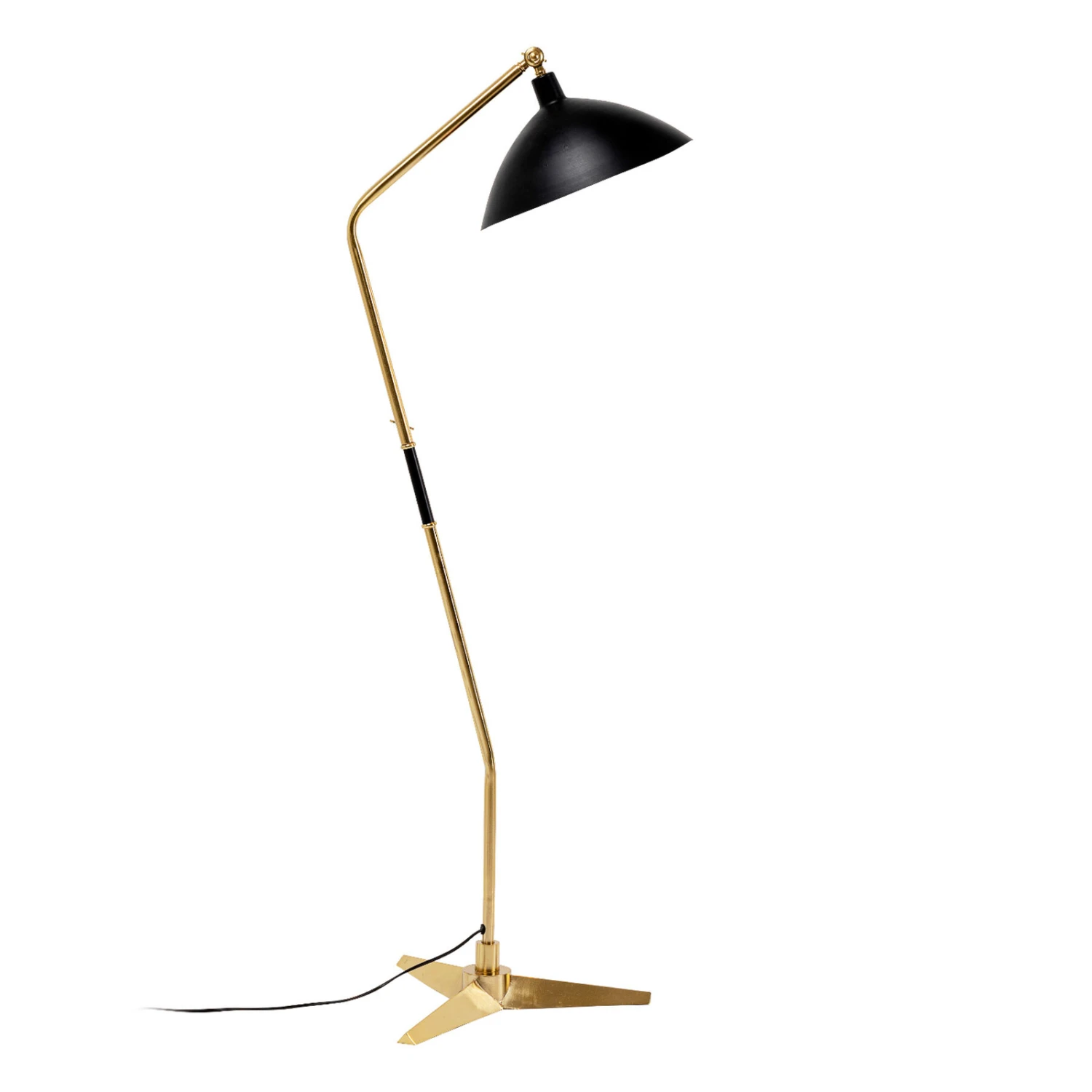 Stehleuchte Desert aus Stahl in Messing mit schwarzem Schirm und Detail