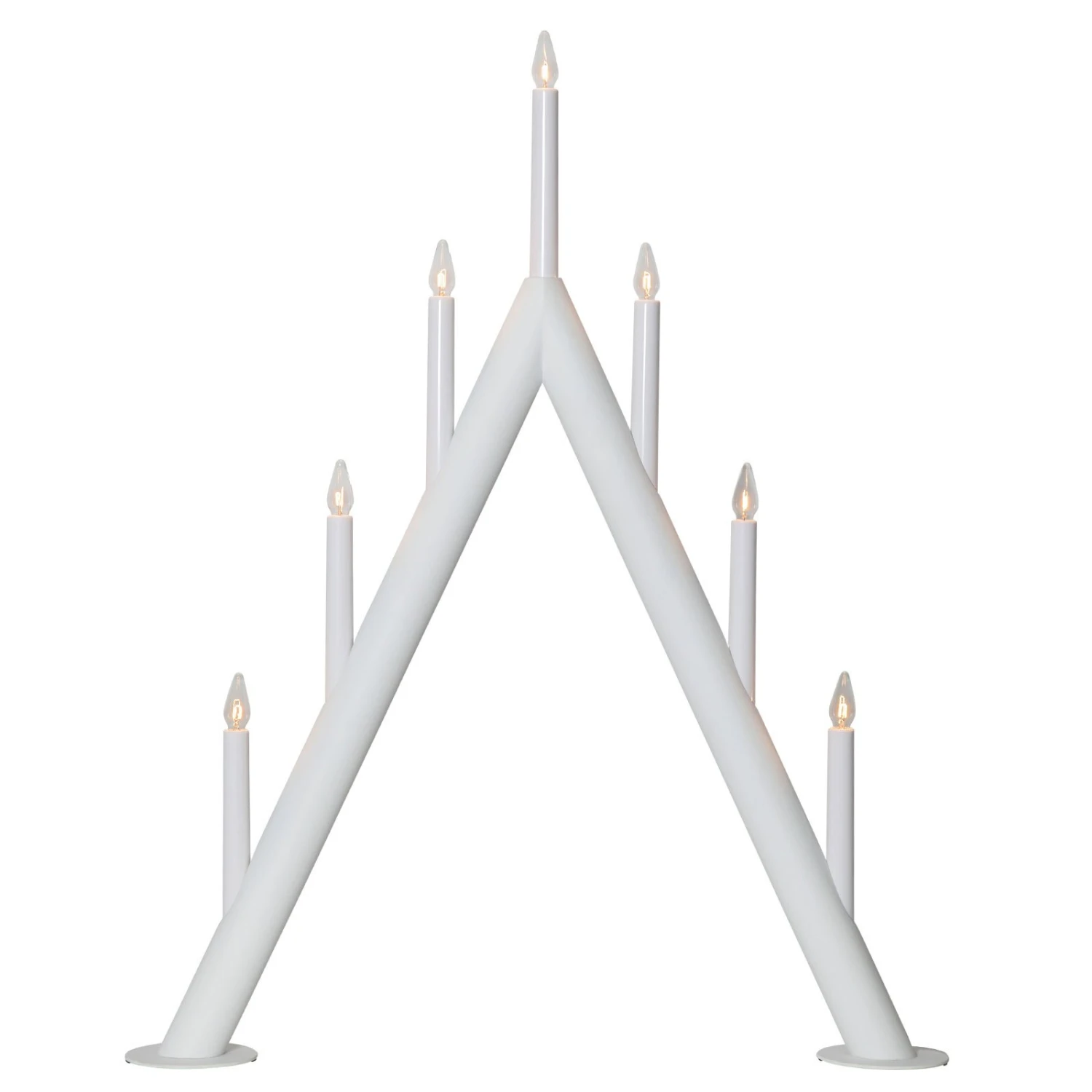 Geradezu puristisch könnte man das Design des aus Holz gefertigten Kerzenleuchters Circum nennen. Das Holzgestell ist nach oben spitz gewinkelt, die sieben Kerzenleuchten sind gleichmäßig verteilt. Es ist gerade diese Schlichtheit, die Circum zu einem besonderen Hingucker macht. Der Schalter ist in das Zuleitungskabel integriert.