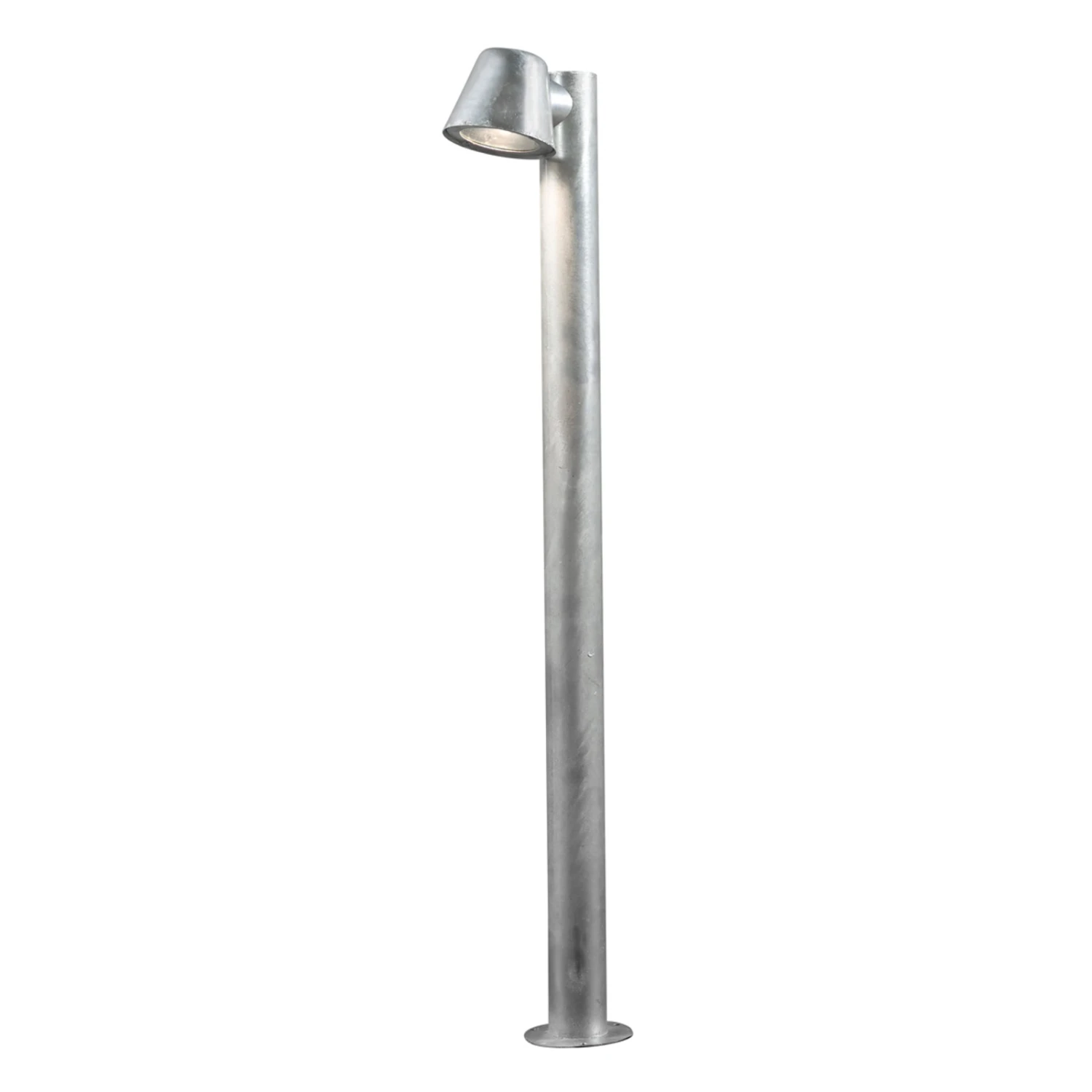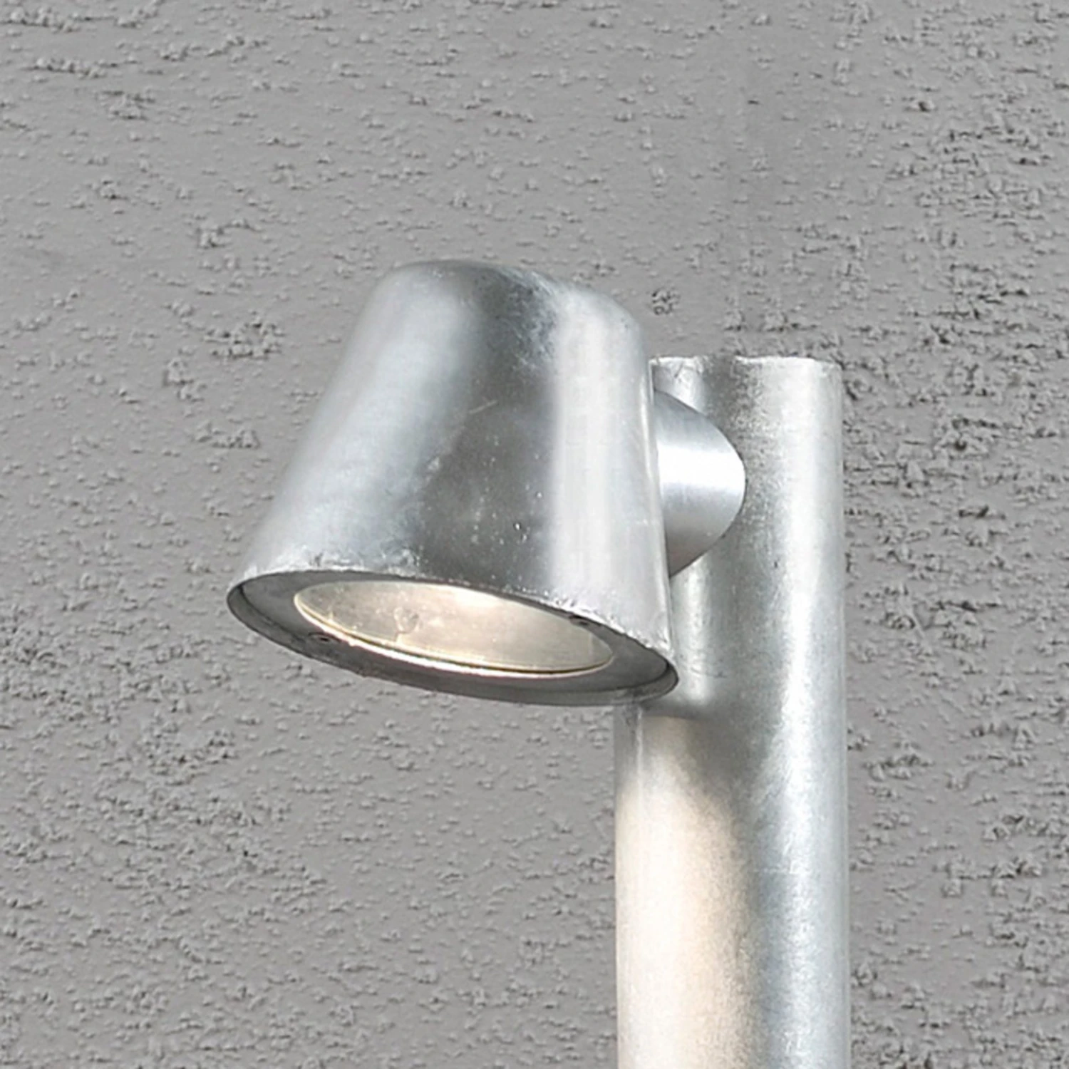 Auf einen ersten Blick wirkt sie ein wenig wuchtig. Diese Leuchte aus Stahl erscheint zumindest nicht filigran. Dies bedeutet für den Betrachter, dass die Wegeleuchte mit dem robusten Pfahl und einem dick ummantelten Spot im Außenbereich Wind und Wetter oder mechanischen Belastungen gut stand hält.