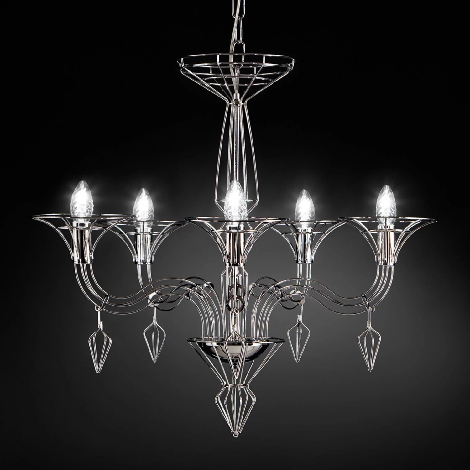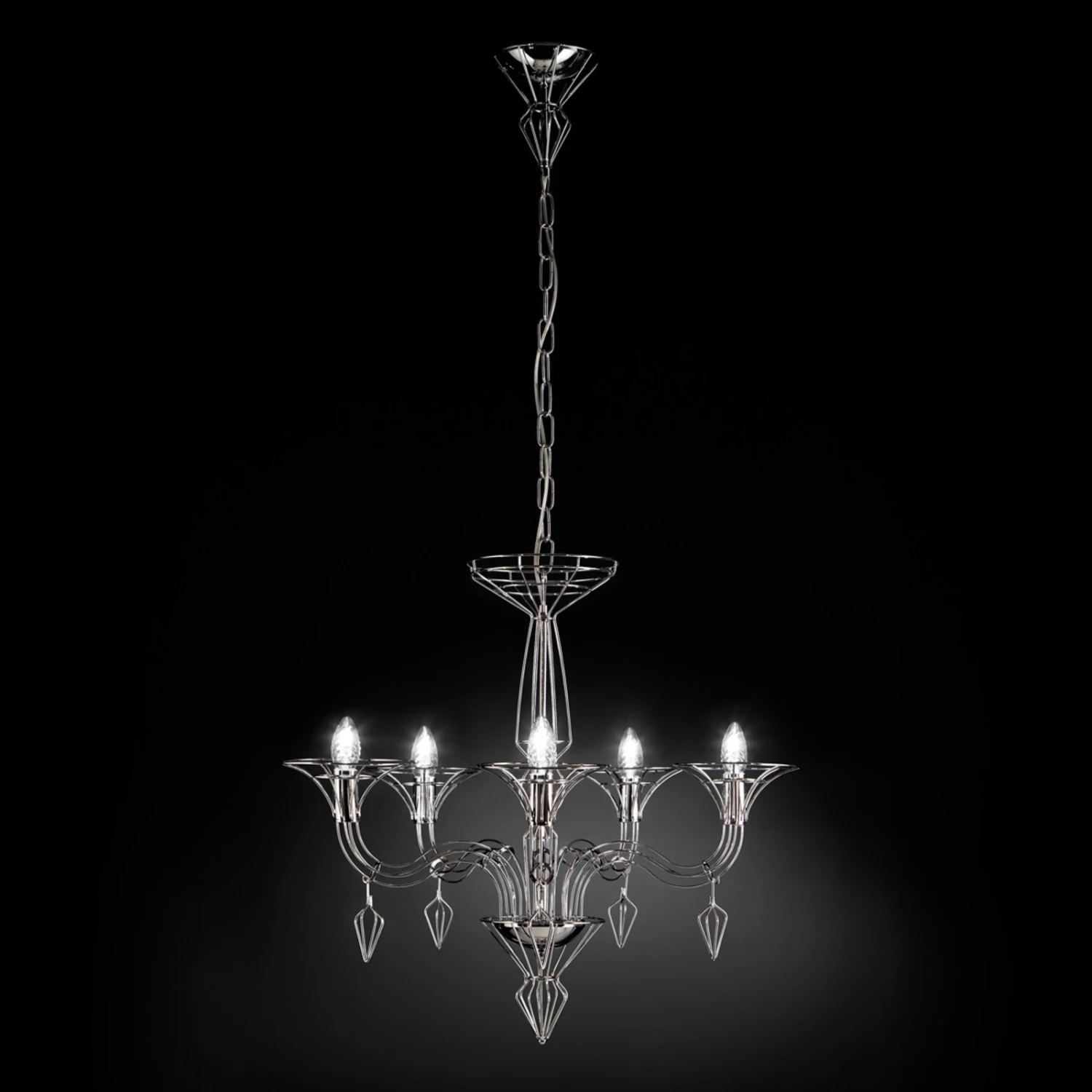 Von weitem betrachtet, hat der Kronleuchter Dedalo alles, was ein klassischer Kronleuchter haben sollte: eine Krone, von der die Arme, mehr oder weniger geschwungen, ausgehen und am Ende mit einer Art Lampenteller und einer Kerze bestückt sind. Während die traditionellen Kronleuchter aber eher aus Kristall oder Muranoglas sind, ist dieser Kronleuchter komplett aus feinen Metallstäben. Sogar der Behang, der normalerweise aus unterschiedlich geschliffenen Kristallen besteht, wurde mit Metallgeflecht nachgestellt. Da die feinen Metallstäbe alle verchromt sind, glänzen sie im Licht der Kerzen genauso, wie es auch Kristalle tun würden. Tradition und Moderne sind bei dem Kronleuchter Dedalo perfekt vereint.