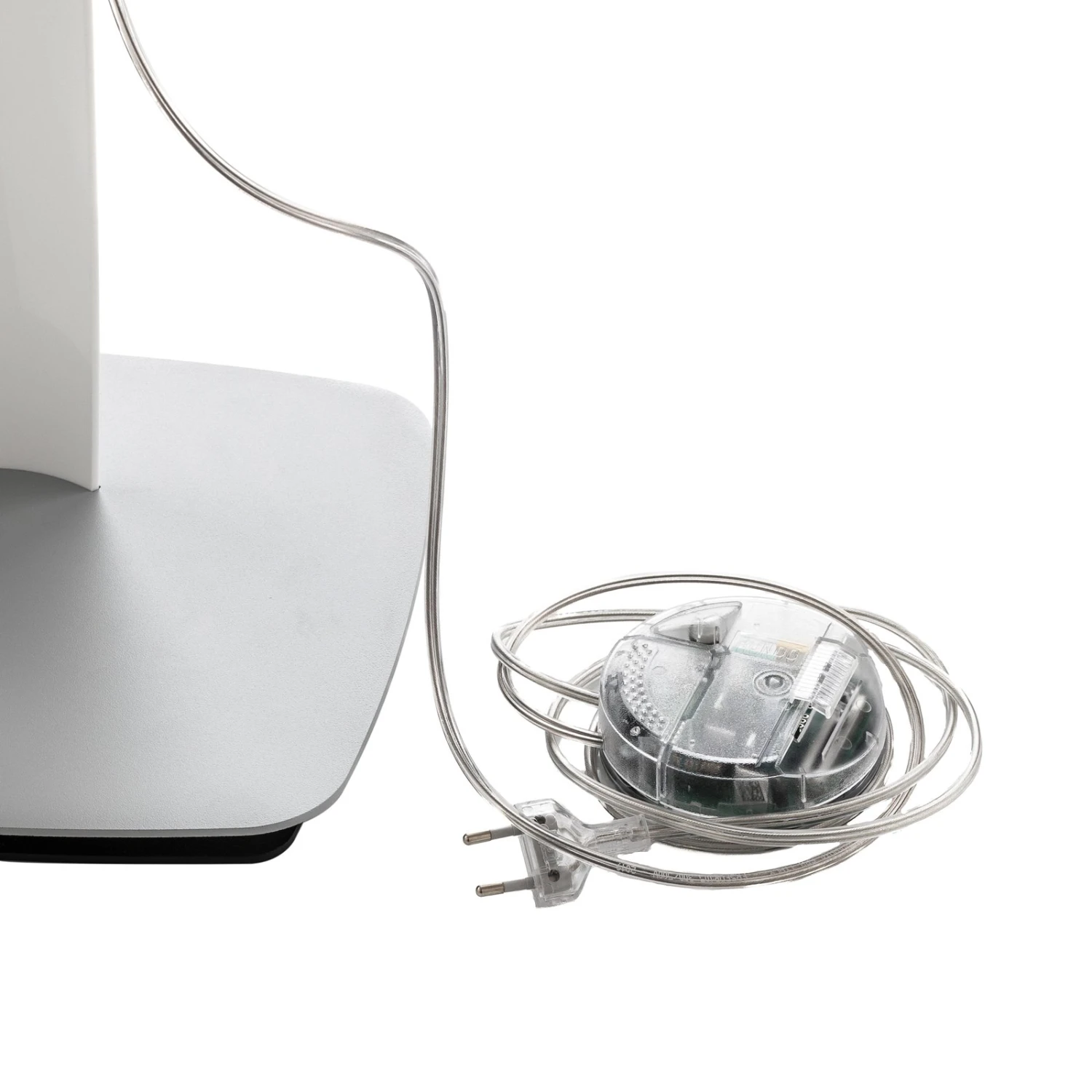 Dimmbare Designer Stehleuchte Shakti aus Plexiglas mit Fuß in satinierter Metalloptik