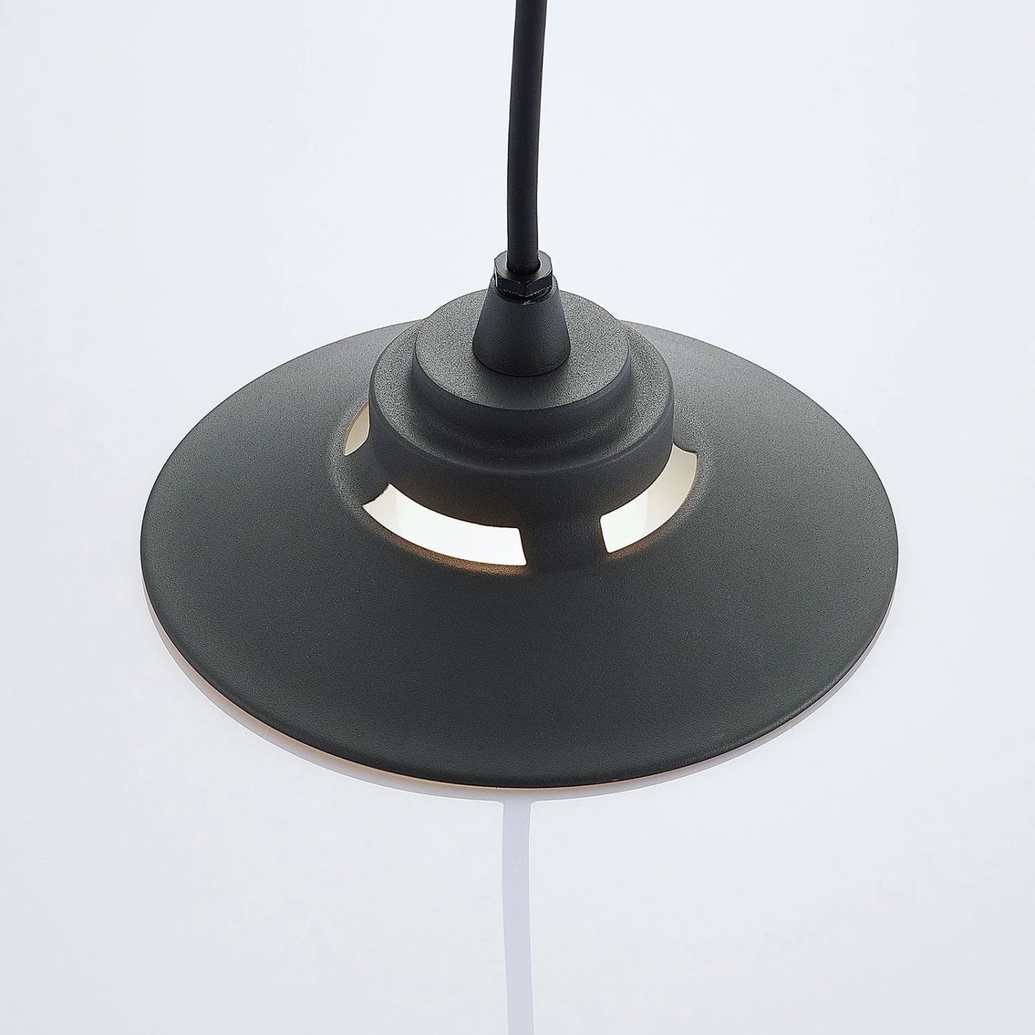 Cassia hat einen recht klassisch anmutenden Schirm mit dunkelgrauer Oberfläche, der aus Aluminium gefertigt worden ist. Da die Oberfläche seewasserfest ist, kann man die Pendelleuchte auch in Meeresnähe anbringen und hat dennoch langanhaltende Freude an dem Leuchtenprodukt. Vor allem überdachte Terrassen und Balkone sind gute Einsatzorte für die LED-betriebene Pendellampe. Die Effizienz der Leuchtdioden ist gut und eine weiße Kunststoffabdeckung über den Leuchtmitteln sorgt für angenehm weichen Lichtschein.