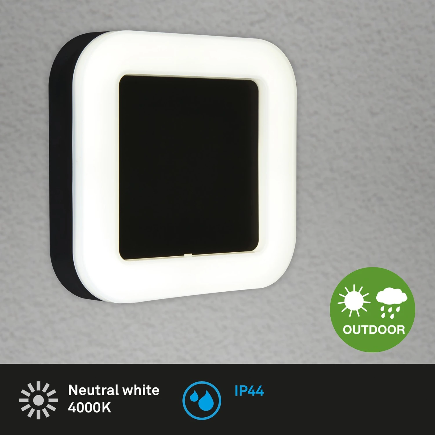 Ein besonderes Highlight sind die im Lieferumfang enthaltenen Dekorplatten (1x schwarz, 1x Edelstahl), die mittels Magnetsystem wechselbar sind. Die Außenwandleuchte überzeugt mit energiesparenden 15 Watt, einer Lichtleistung von 1.550 Lumen, einer Farbtemperatur von 4.000 Kelvin und einer hohen durchschnittlichen Lebensdauer von ca. 25.000 Stunden. Als Wand- oder Deckenleuchte einsetzbar.
