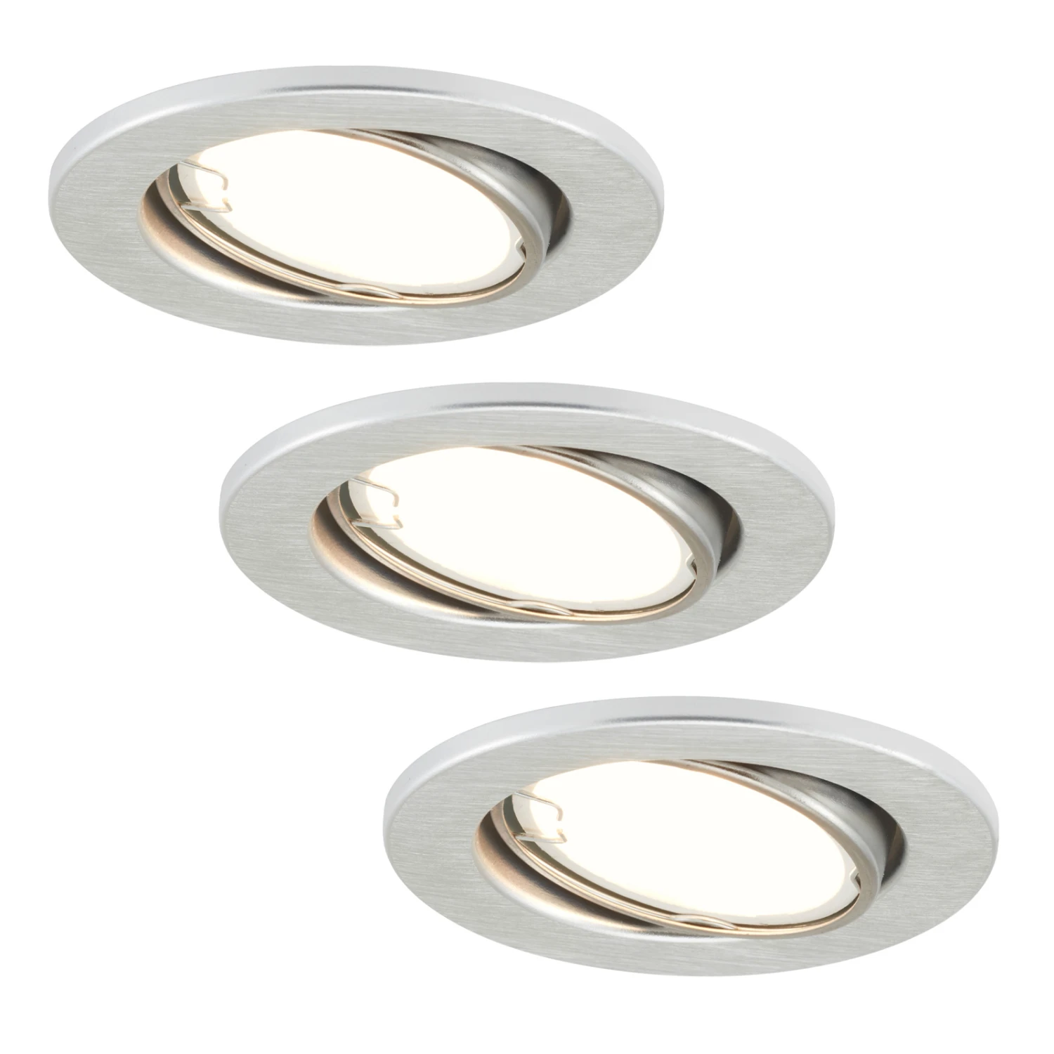 Die klassische runde Form macht die LED-Einbauleuchten vielseitig einsetzbar. In dem äußeren Metallrahmen aus Aluminium sitzt das LED-Leuchtmittel mit GU10-Sockel. Dieses ist von einem schmalen Rahmen umgeben und kann geschwenkt werden. Aufgrund dessen können gezielt Akzente und Bereiche in Licht getaucht werden. Durch die Energieeffizienzklasse A+ sind die in der Lieferung enthaltenen LED-Leuchtmittel lange einsetzbar und verbrauchen wenig Strom.