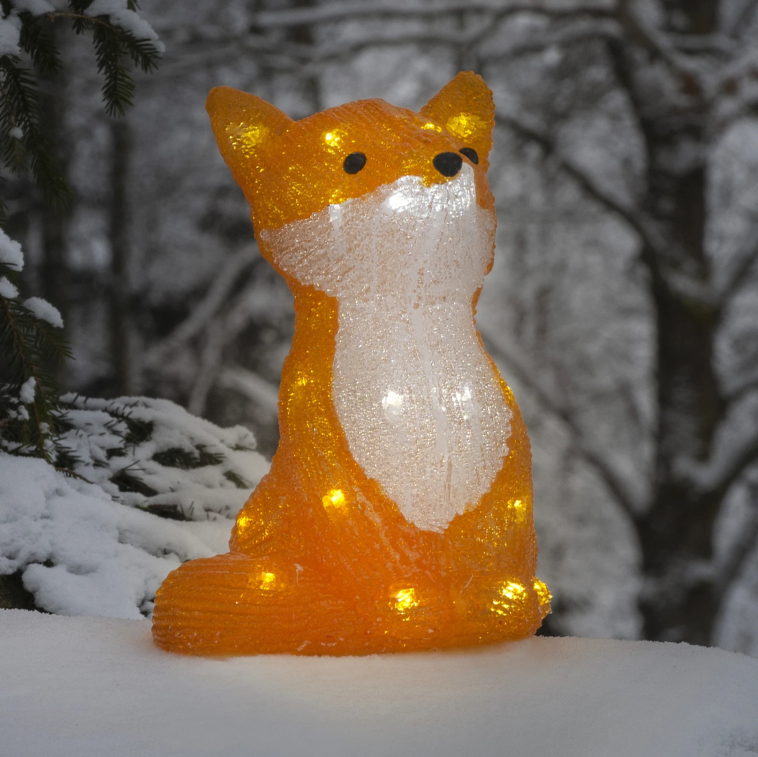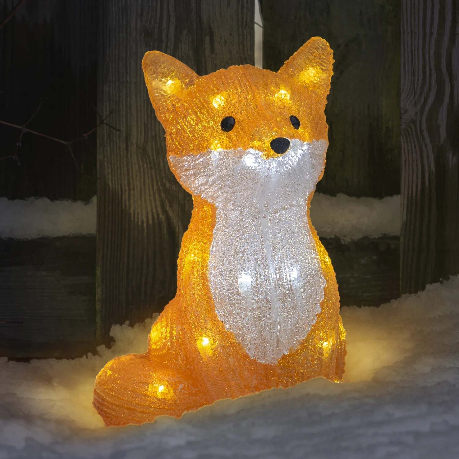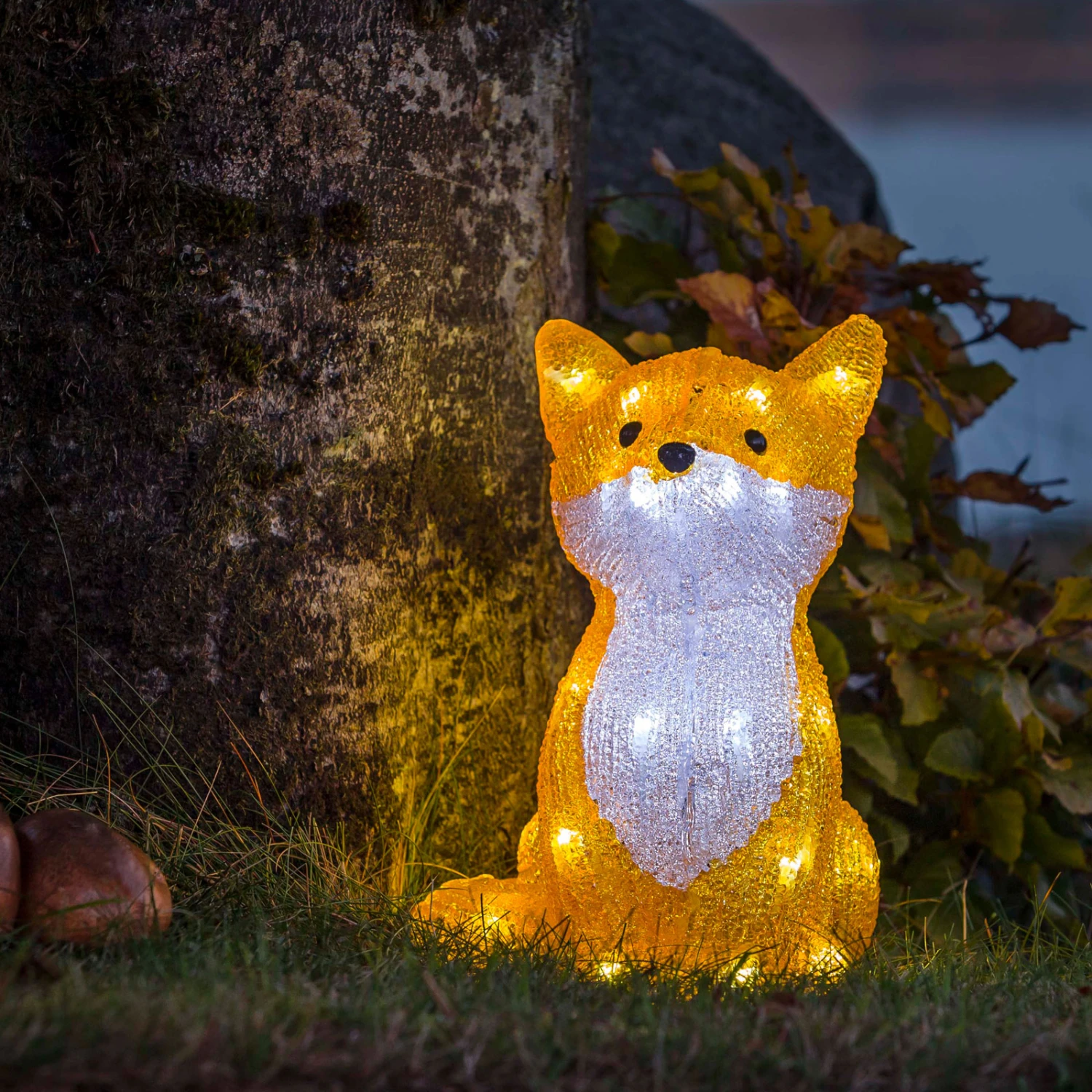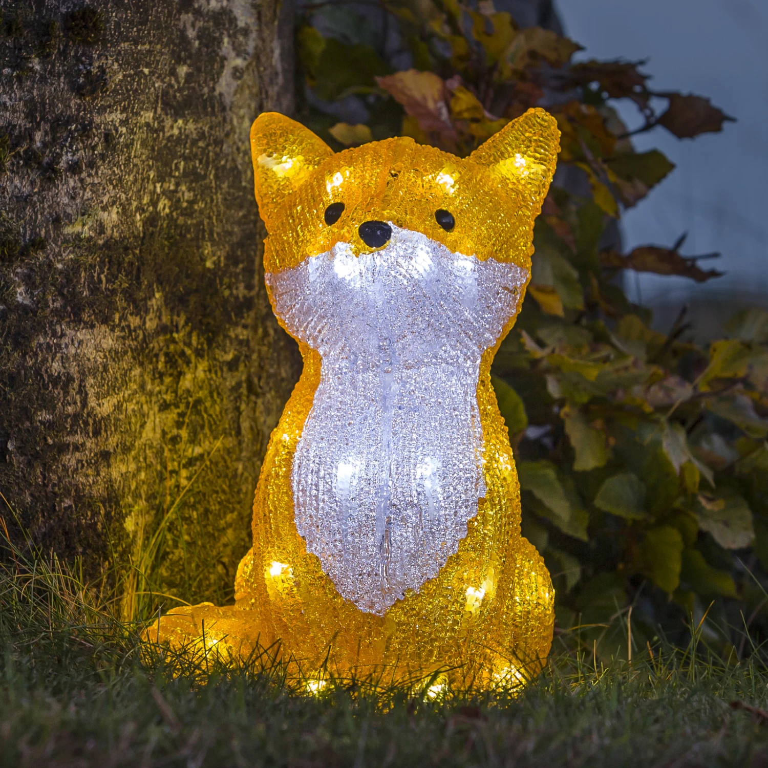 Dieser hübsche Fuchs fällt auf dem nächtlich dunklen Grundstück bestimmt jedem sofort auf: Die Leuchtfigur Fuchs wird von tageslichtweiß strahlenden Dioden hell beleuchtet. An diesem kleinen Fuchs werden Kinder und Erwachsene ihre helle Freude haben. Die Stromversorgung der schönen Acryl-Figur wird über ein 5 m langes Kabel gewährleistet. Mit Schutzart IP44 hält der Fuchs auch stärkeren Witterungseinflüssen stand.