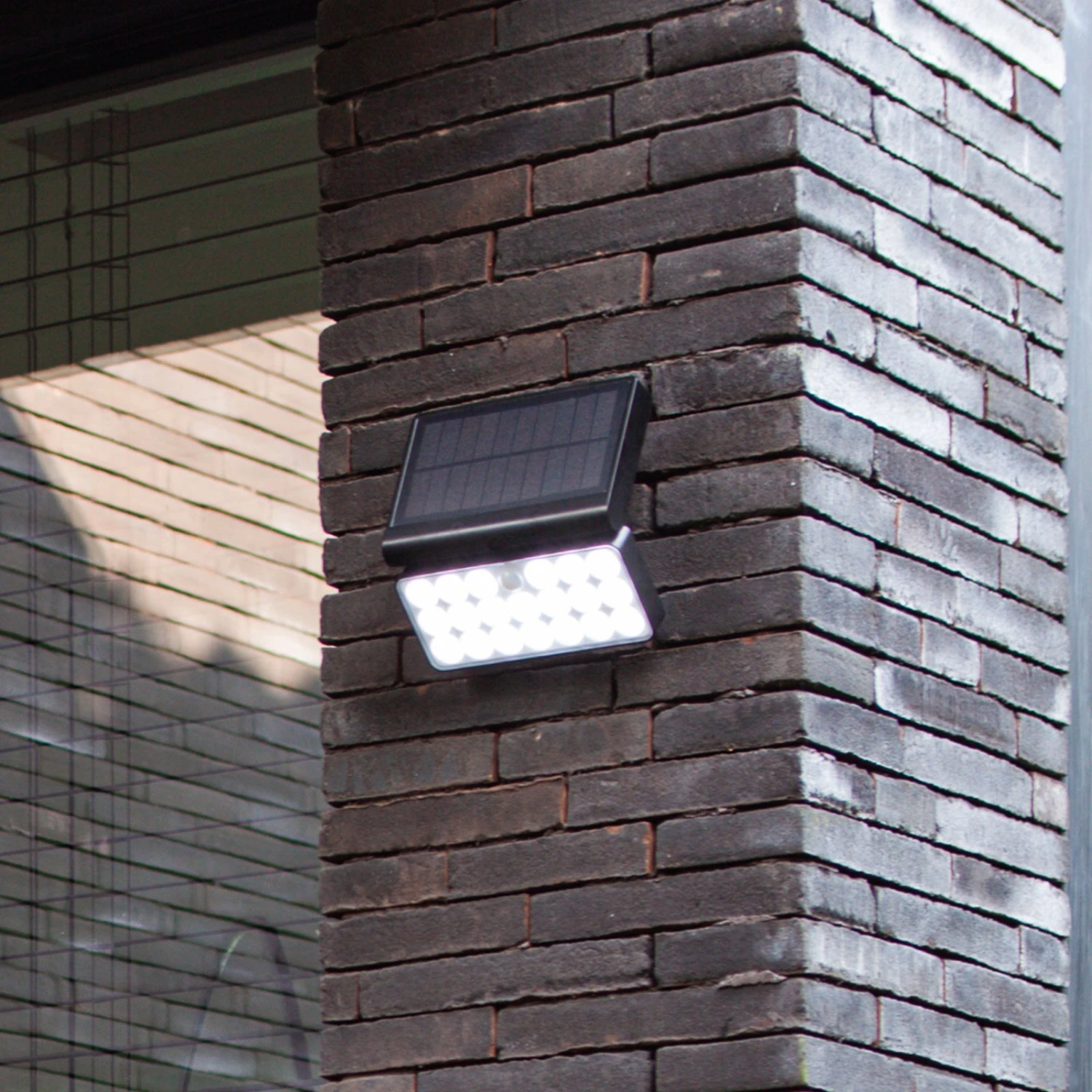 Moderne LED-Solar-Außenwandleuchte Tuda aus Kunststoff mit Bewegungssensor
