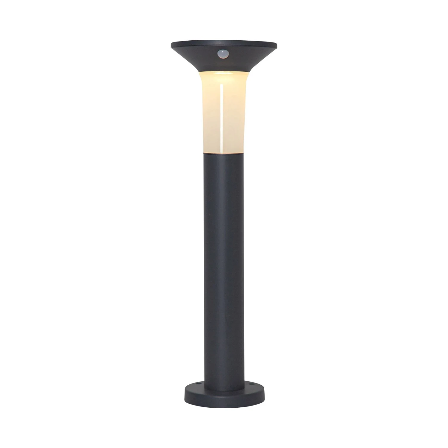Desweiteren setzt sich ihr Rohr aus zwei Teilen zusammen, wodurch die Höhe zwischen 55 und 90 cm gewählt werden kann. Die Wegeleuchte ist mit einem Bewegungs- und Dämmerungssensor ausgestattet. So wird sichergestellt, dass sie sich bei Dunkelheit einschaltet und am Tag, wenn sie nicht gebraucht wird, ausgeschaltet bleibt. Der Bewegungssensor erfasst Bewegungen in einem Radius von 6-8 Metern und einem Winkel von 120°. Beim Erkennen einer Bewegung leuchtet Valta für 30 Sekunden mit 400 Lumen. Im Anschluss schaltet sich ein Dauerlicht mit 15 Lumen ein.