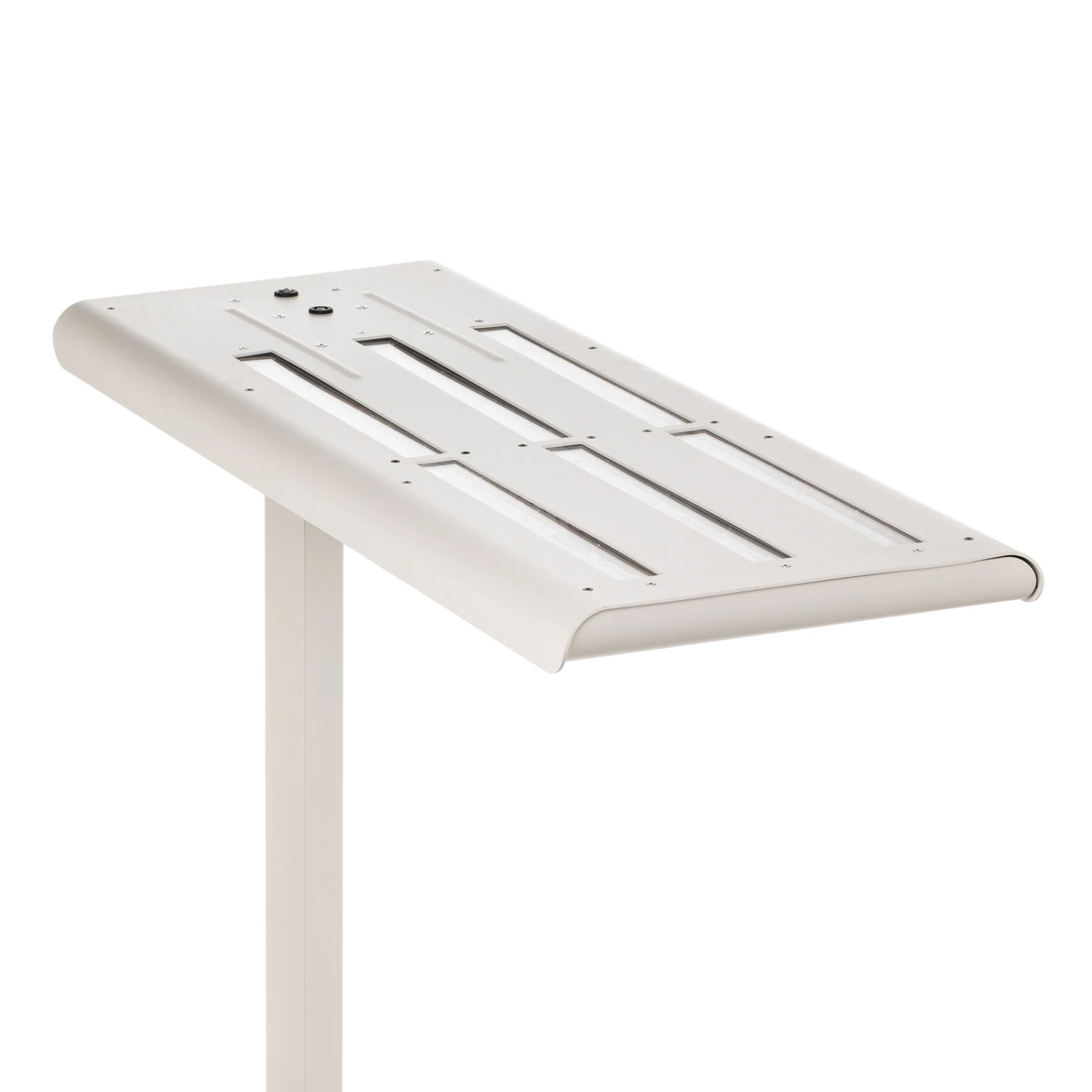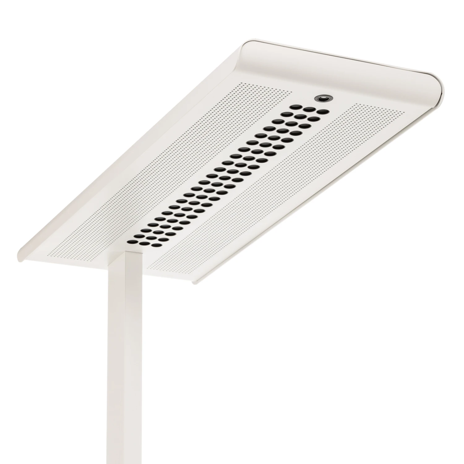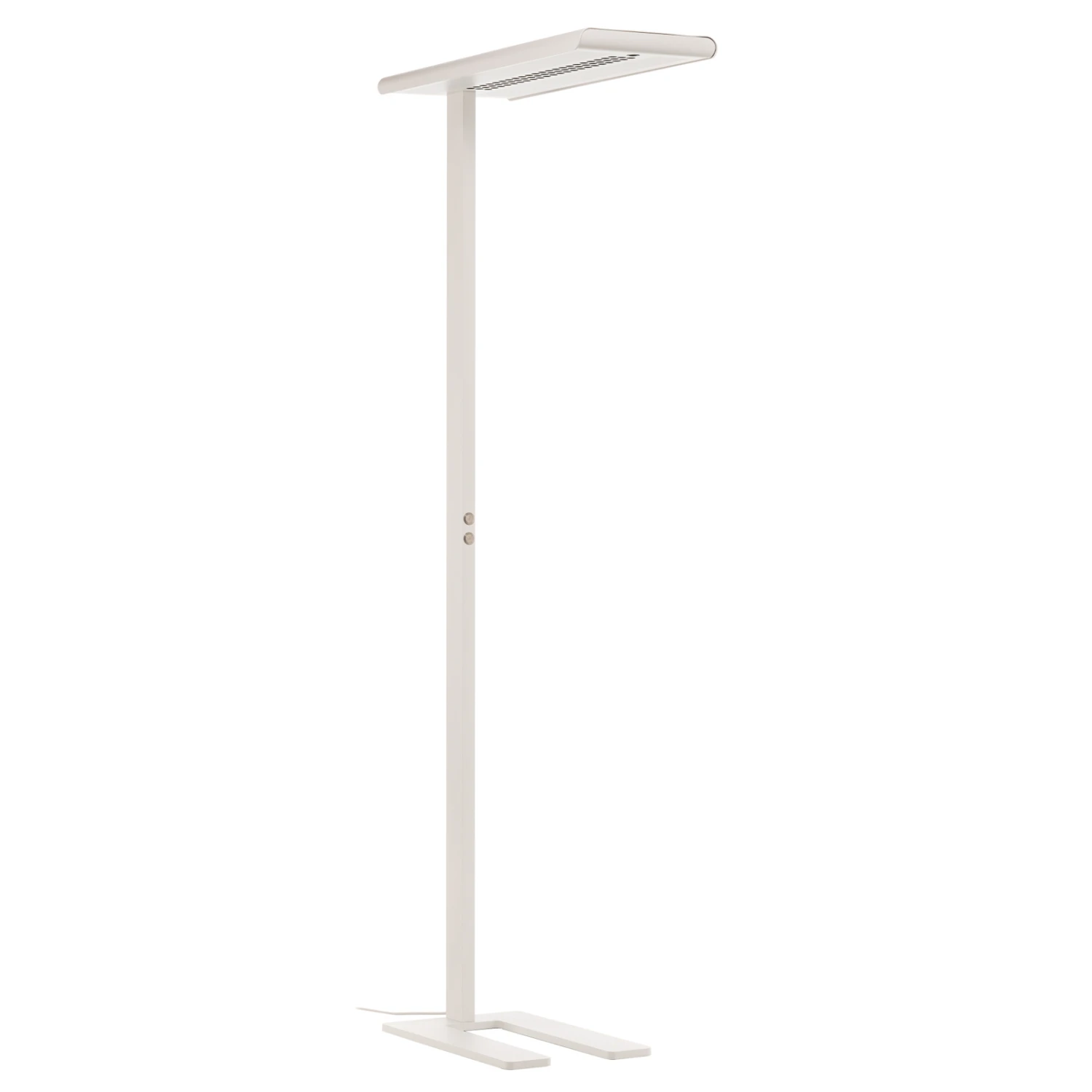 Hinsichtlich Steuerbarkeit und Lichtwirkung ist die LED-Stehleuchte Optico ein fortschrittliches Highlight zur modernen Bürobeleuchtung. Sie setzt sich aus einem U-Fuß aus Stahl, einem hohen Aluminium-Standrohr und einem rechteckigen Leuchtenkopf aus Aluminium mit Lichtaustritt in Micropoint-Optik zusammen. Die Lichtabgabe erfolgt breit (60°), direkt und indirekt und zudem blendfrei (UGR 10), sodass sich Optico auch für Bildschirmarbeitsplätze anbietet. Die Bedienung kann einerseits manuell mit den Tastern am Standrohr erfolgen, die das Schalten (kurzer Druck) und Dimmen (langer Druck) für Arbeits- und Grundbeleuchtung getrennt ermöglichen. Darüber hinaus verfügt Optico über einen Präsenz- und Tageslichtsensor am Kopf, der zur automatischen Steuerung anhand der Anwesenheit von Personen und der Umgebungshelligkeit dient. Die bevorzugten Helligkeitswerte können gespichert werden; zudem ist jederzeit der Wechsel zwischen Automatik- und manuellem Modus möglich.