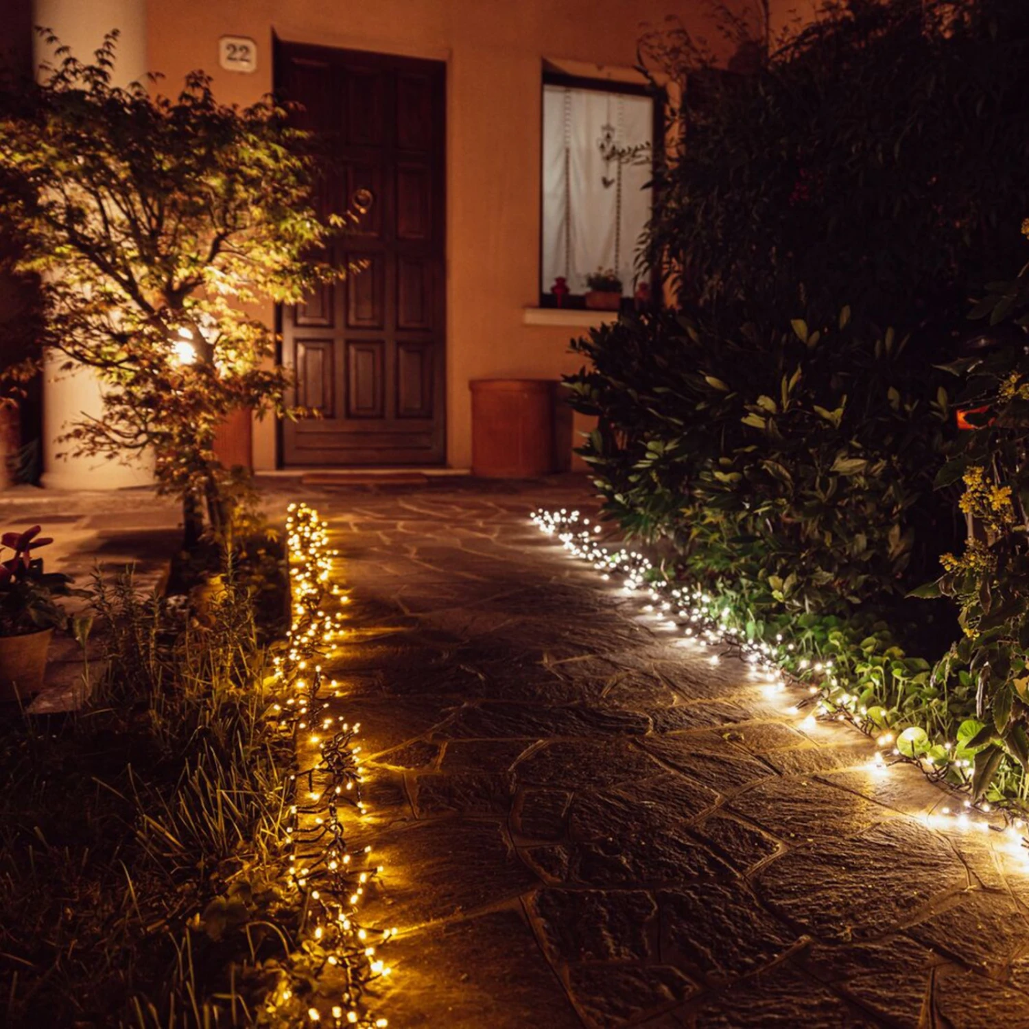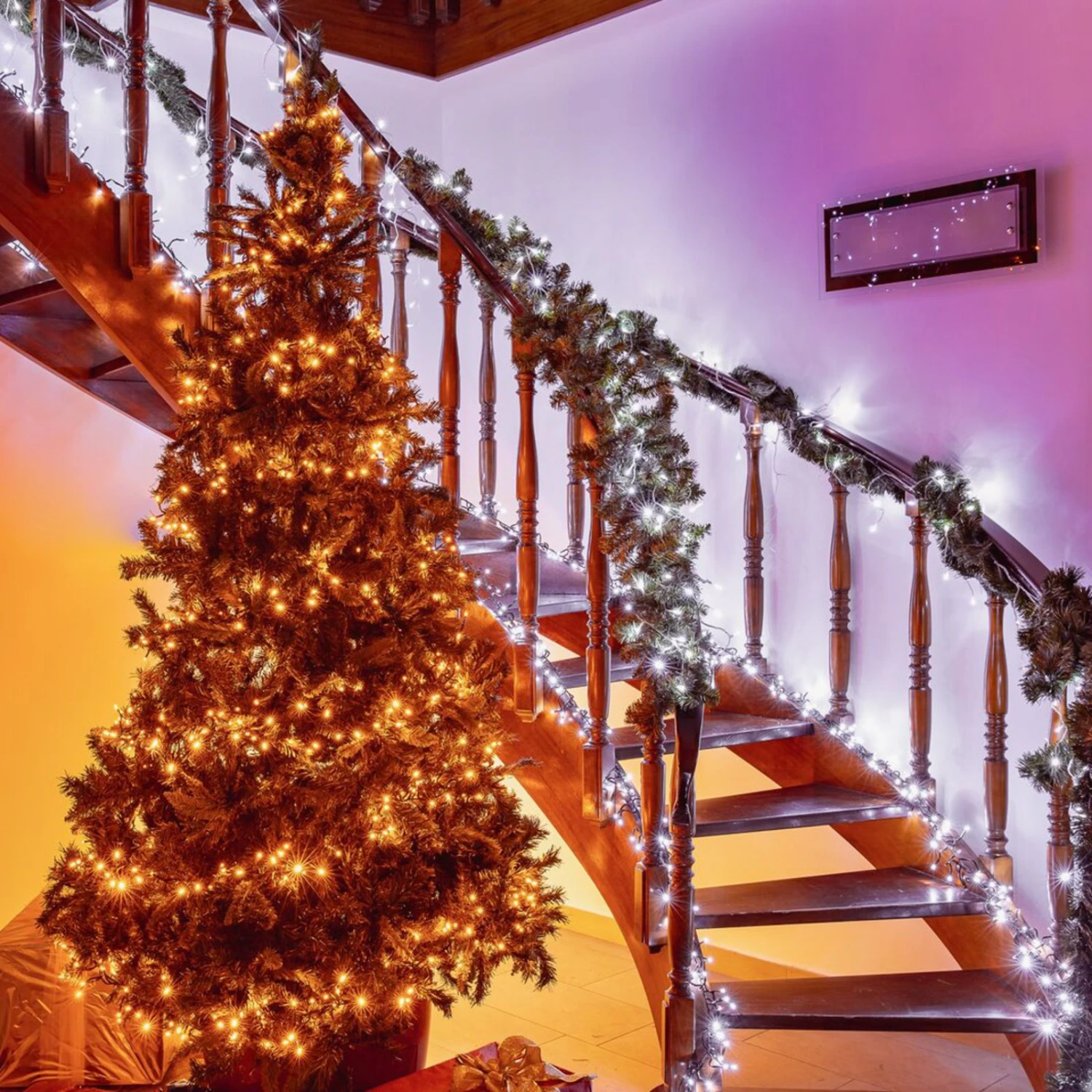 Spektakuläres Lichtschauspiel für innen und außen – amberfarben sowie warmweiß bis tageslichtweiß leuchtende LED-Lichterkette Twinkly, smart steuerbar