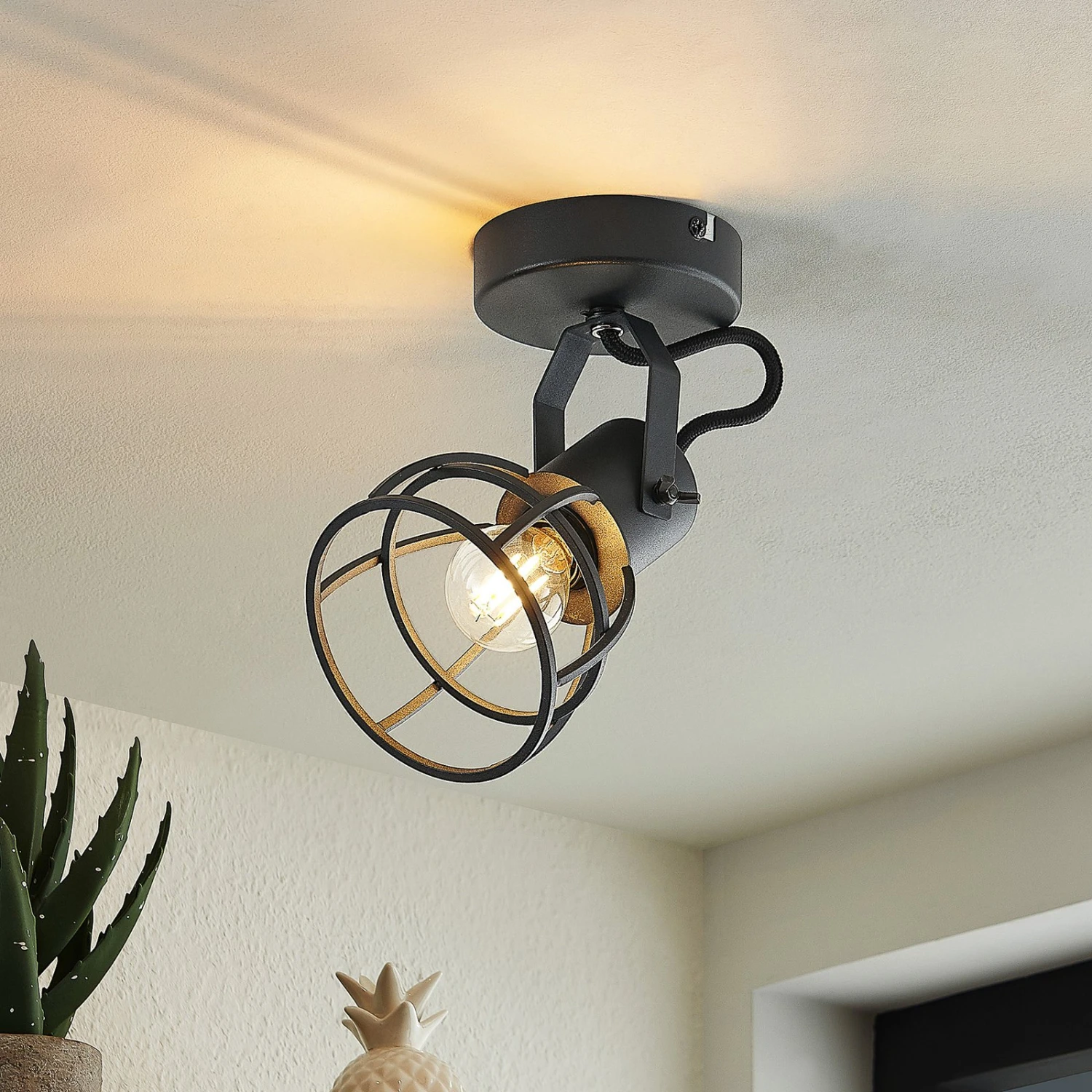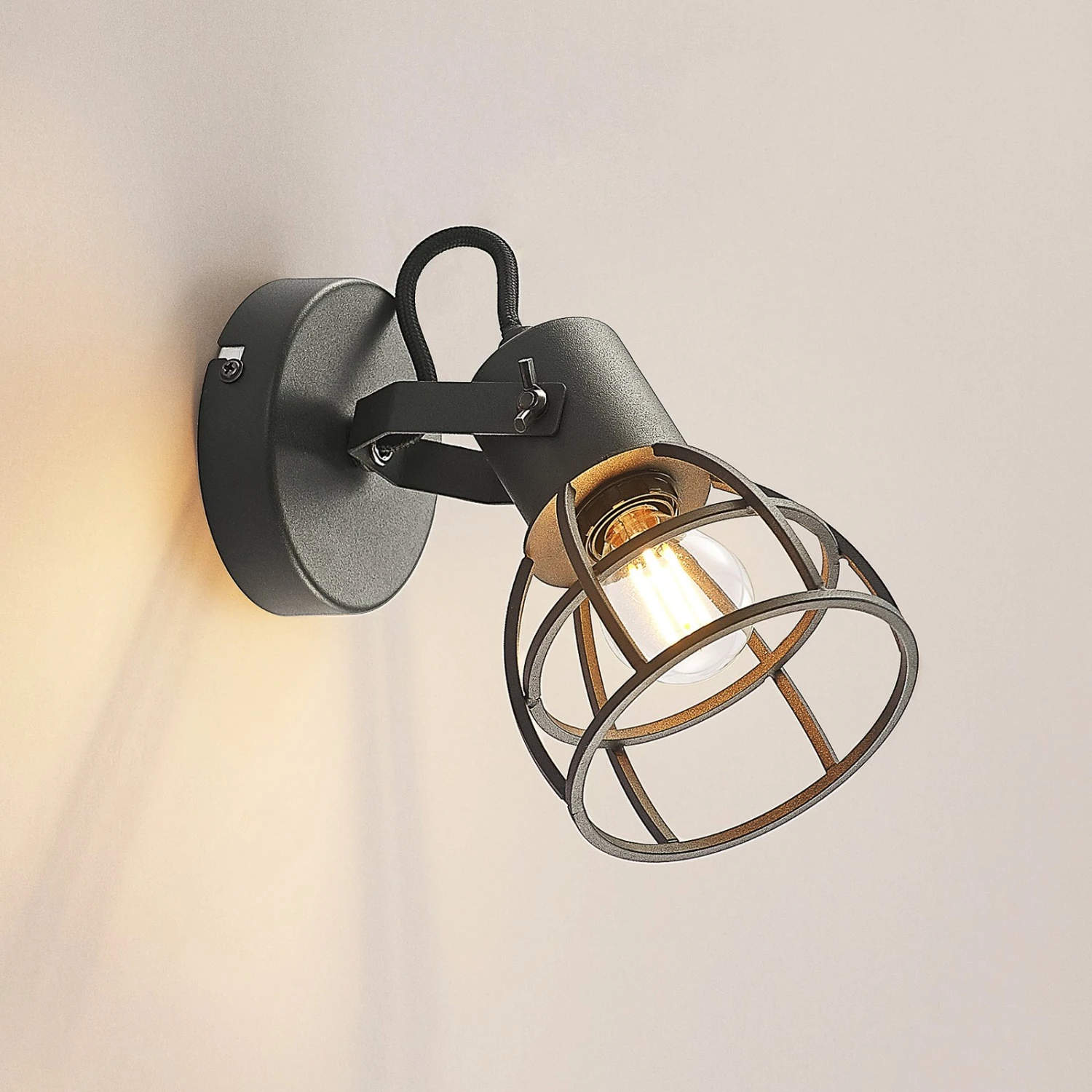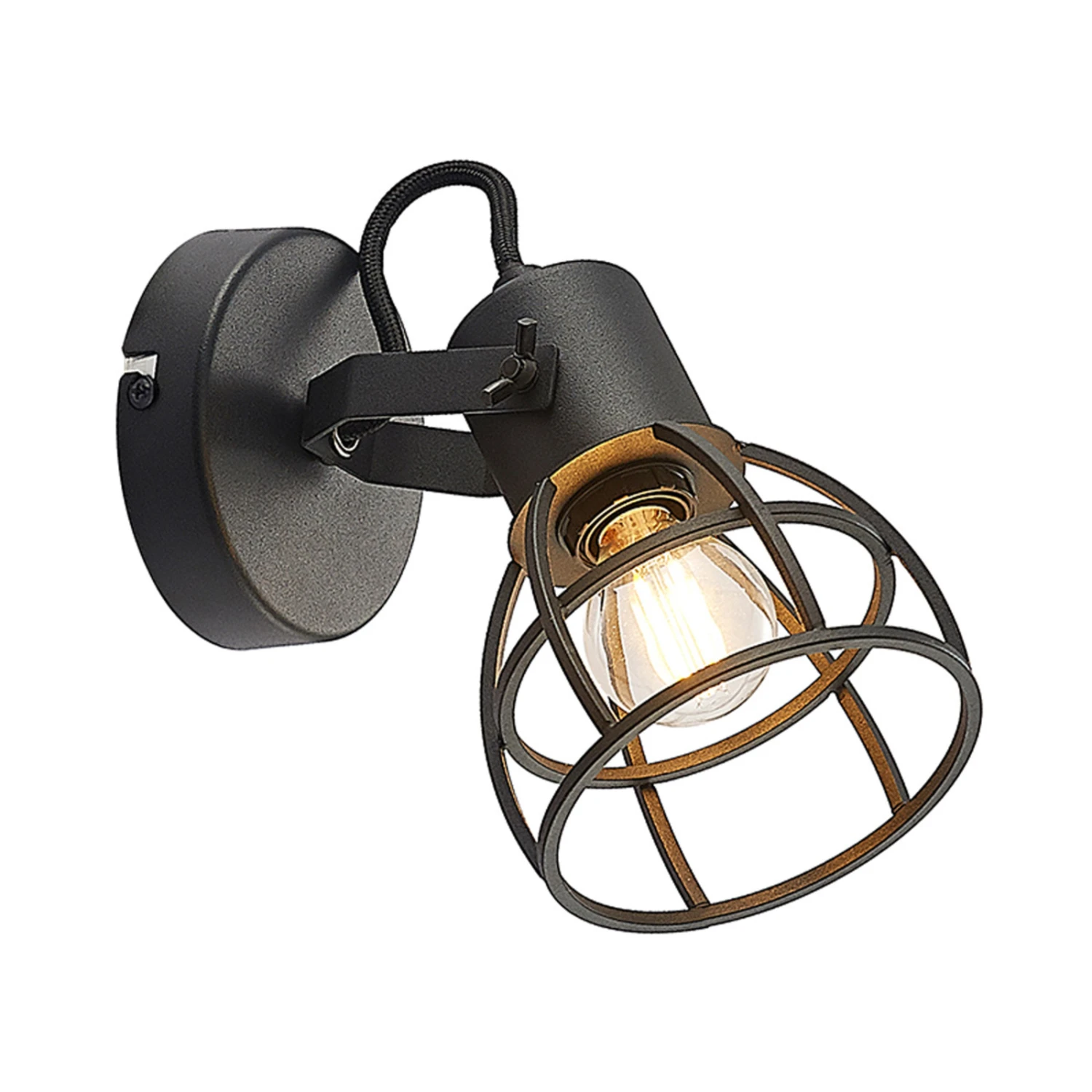Flintos ist einer verstellbarer Spot, der beliebig gedreht und geschwenkt werden kann und sich sowohl an der Wand als auch an der Decke anbringen lässt. Der Lampenschirm ist vollständig aus Eisen gefertigt und er ähnelt in seiner runden Form und mit den großen Durchlässen einem Käfig. Damit kann die Leuchte sowohl in Vintagestilen eingesetzt als auch in solchen Räumen genutzt werden, die industriell gestaltet wurden, denn die Optik passt zu beiden Stilen. Da das Leuchtmittel jederzeit gut sichtbar ist, sollte hier auf dekorative Lampen zurückgegriffen werden, etwa energiesparende LED-Filamentlampen, die klassischen Glühlampen stark ähneln.