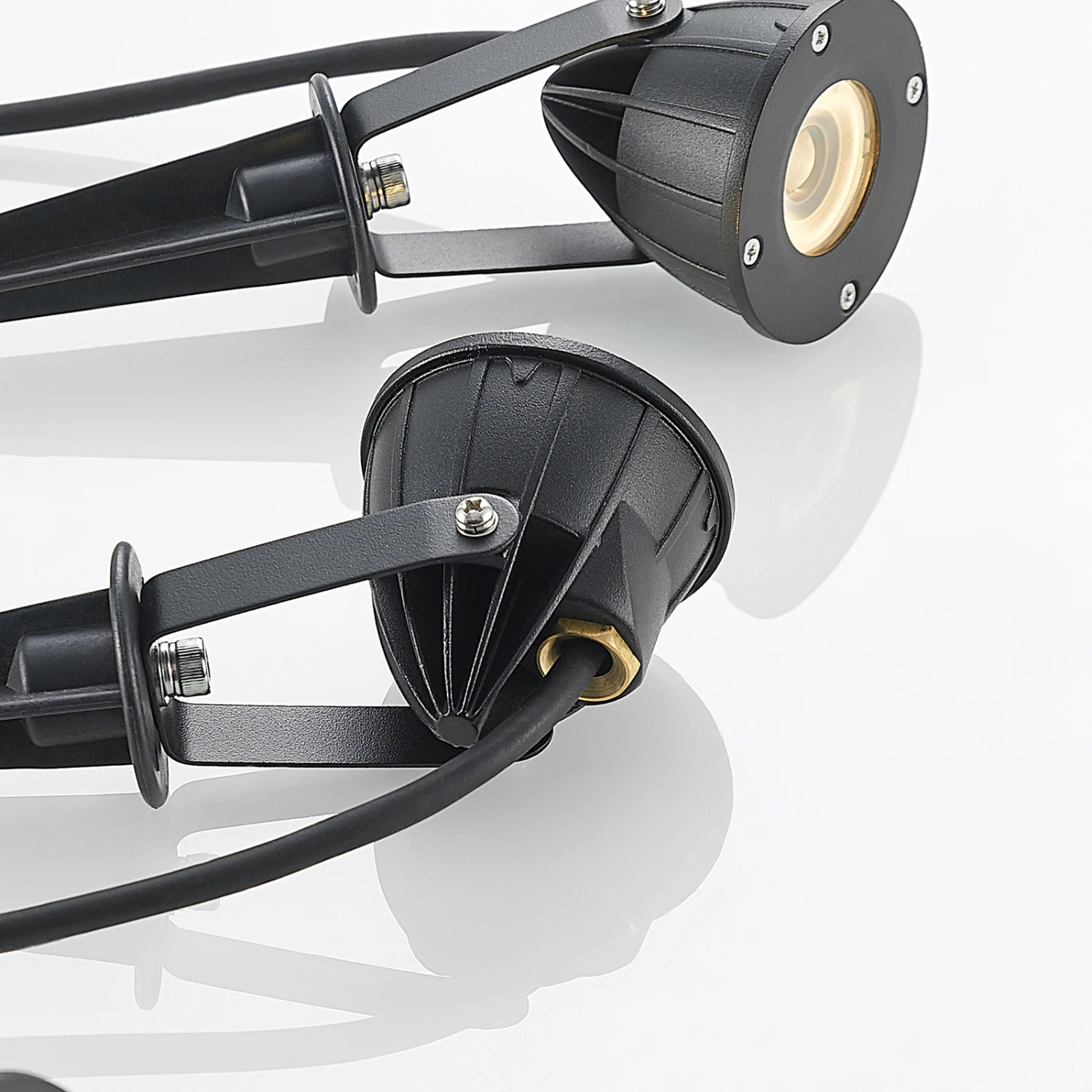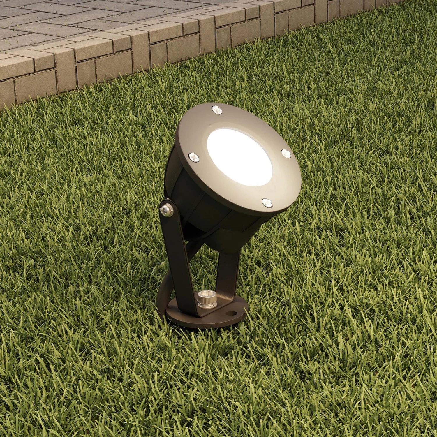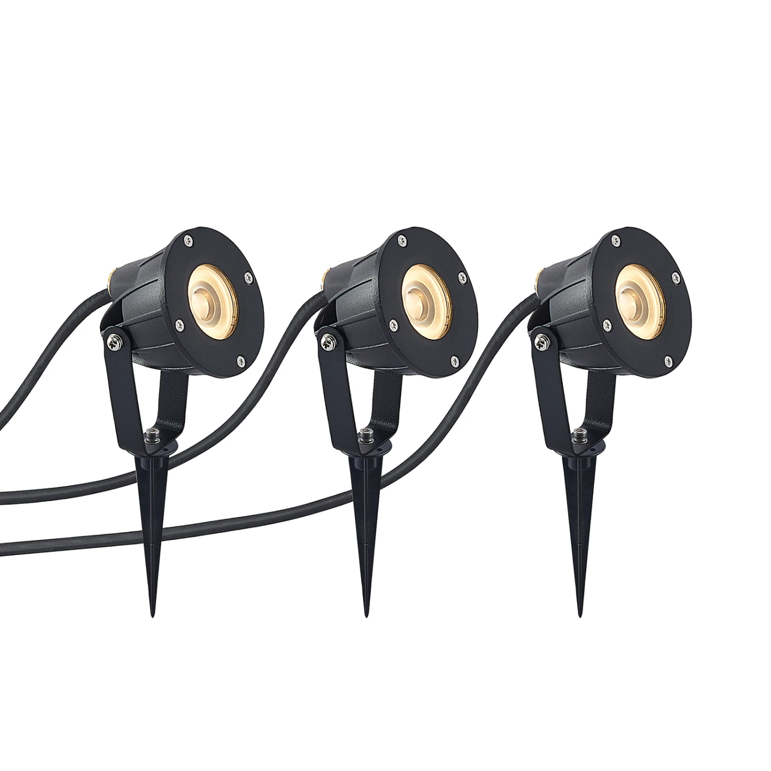Bei diesen Leuchten handelt es sich um Erdspießstrahler im Dreier-Set, die mit einer funktionalen Gestaltung überzeugen und hervorragend zum Anleuchten bestimmter Objekte oder Flächen im Garten oder Hof genutzt werden können. Der Abstrahlwinkel beträgt 30 Grad. Dank des LED-Betriebs handelt es sich um besonders effiziente Lichtspender für den Außenbereich, die zudem auch gut vor Nässe und Schmutz geschützt sind mit ihrer hohen Schutzart. Sie bieten stets ein angenehmes Licht zum Orientieren nach Einbruch der Dunkelheit und jeder Leuchtkopf kann gedreht und geschwenkt werden.