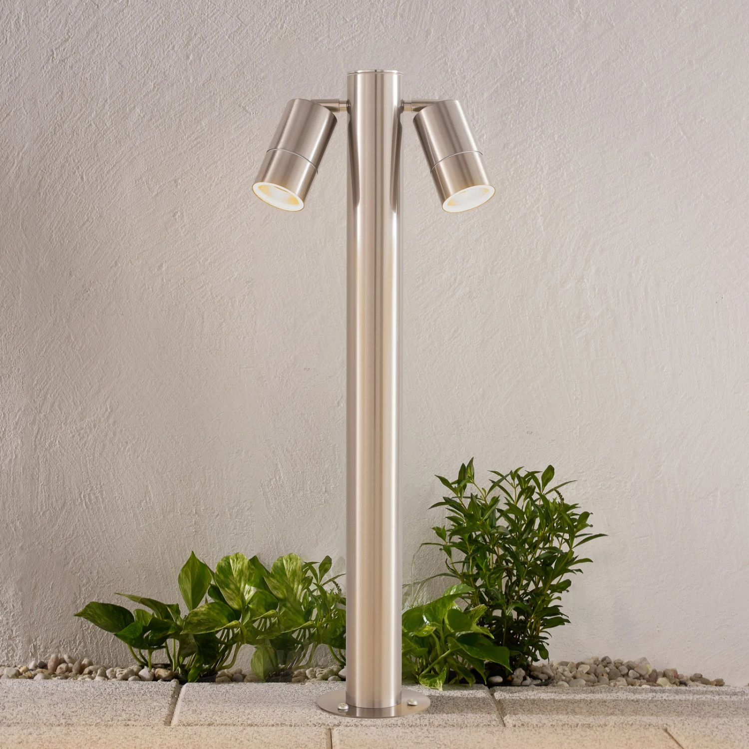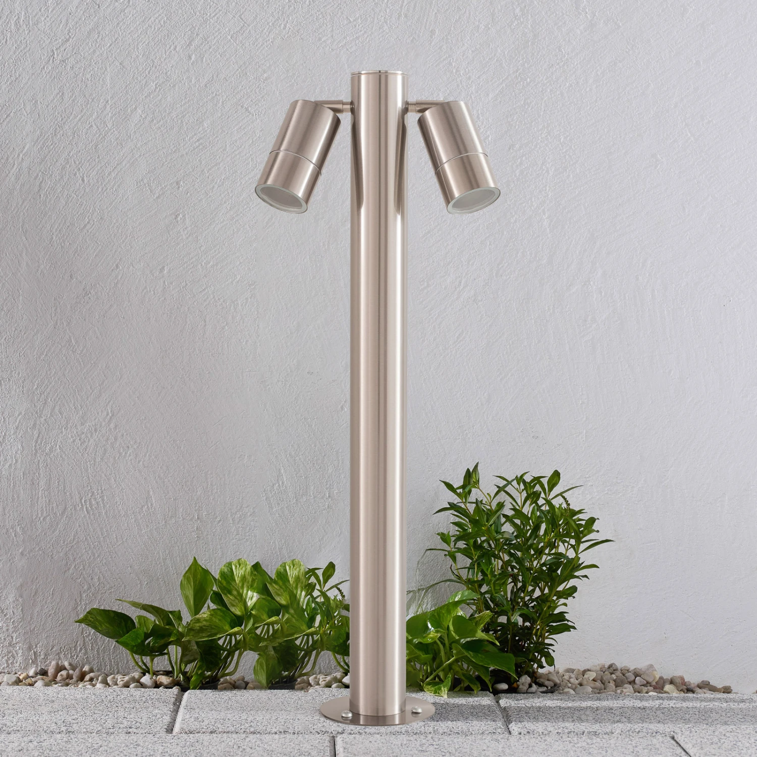 Zweiflammige Edelstahl-Wegeleuchte Myan mit verstellbaren Spots, V4A-Qualität
