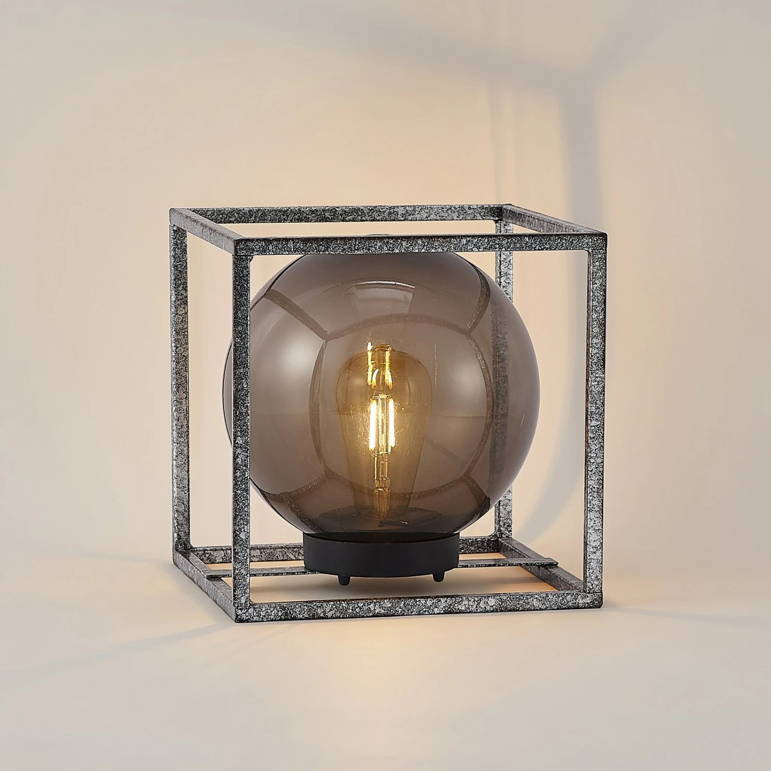 Würfelförmige LED-Solarleuchte Purdie aus Metall und Kunststoff Die LED-Solarlampe Purdie überzeugt mit ihrer interessanten Würfeloptik. Sie besteht aus einem Gestell aus Metallstreben, welche mit ihrer Positionierung einen Würfel bilden. Im Inneren dieses Konstruktes sitzt ein runder Leuchtenschirm aus Kunststoff, welcher durch seine neblige Farbgebung die fest verbaute LED umgibt und für eine abgeblendete Ausleuchtung sorgt. Die LED-Solarleuchte Purdie ist akkubetrieben, sodass sie überall im Garten platziert werden kann, ohne dass ein Stromkabel verlegt werden muss. Darüber hinaus spendet sie mit voll aufgeladenen Akkus sechs bis acht Stunden zuverlässig Licht und generiert das passende Ambiente für den Außenbereich. Durch die Schutzart IP44 ist die Leuchte gegen Spritzwasser geschützt und eignet sich aus diesem Grund hervorragend für die Platzierung auf einer Terrasse. Das außergewöhnliche Design setzt auffallende Akzente innerhalb der restlichen Dekoration im Garten.