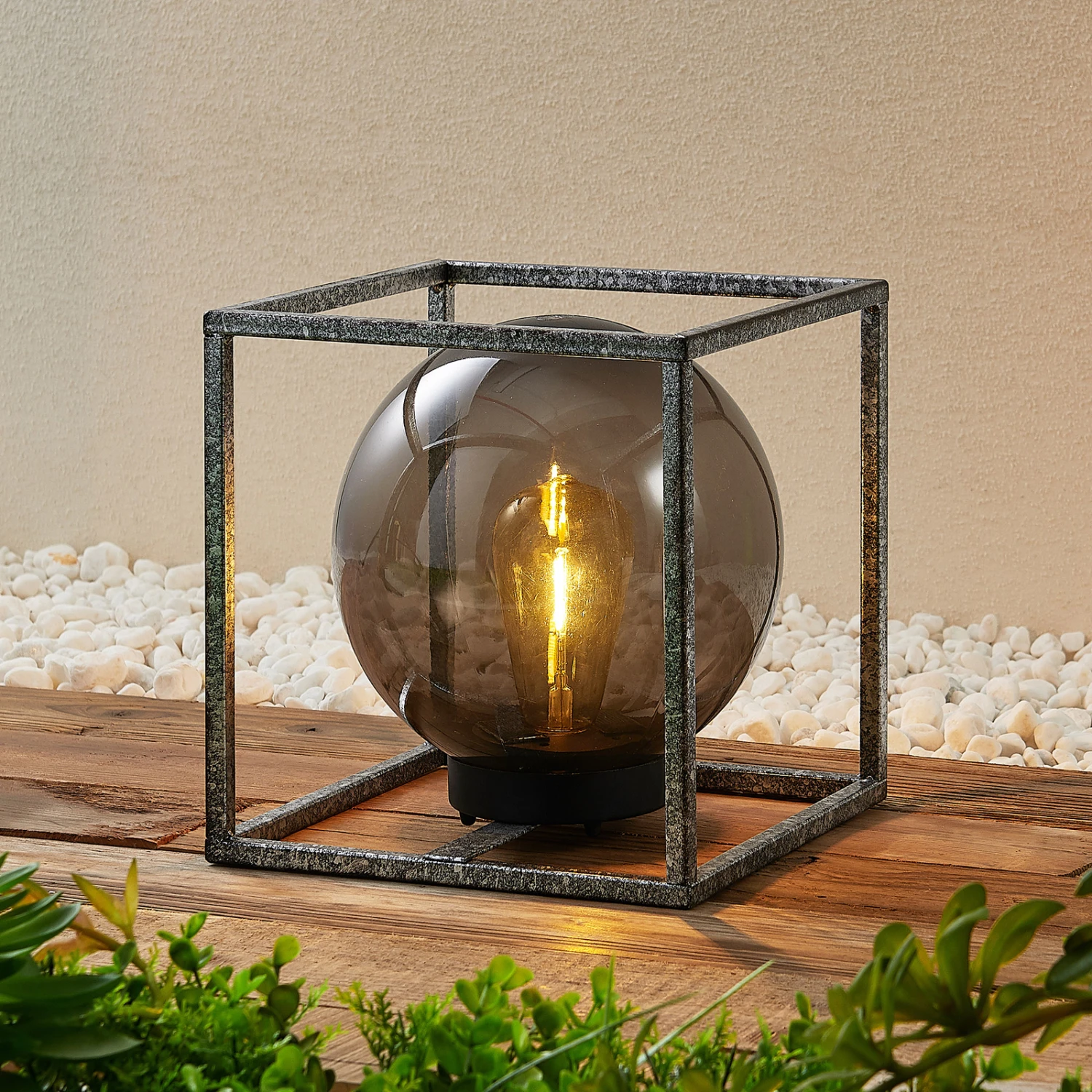Lindby Purdie LED-Solarleuchte, Käfig, Kugel