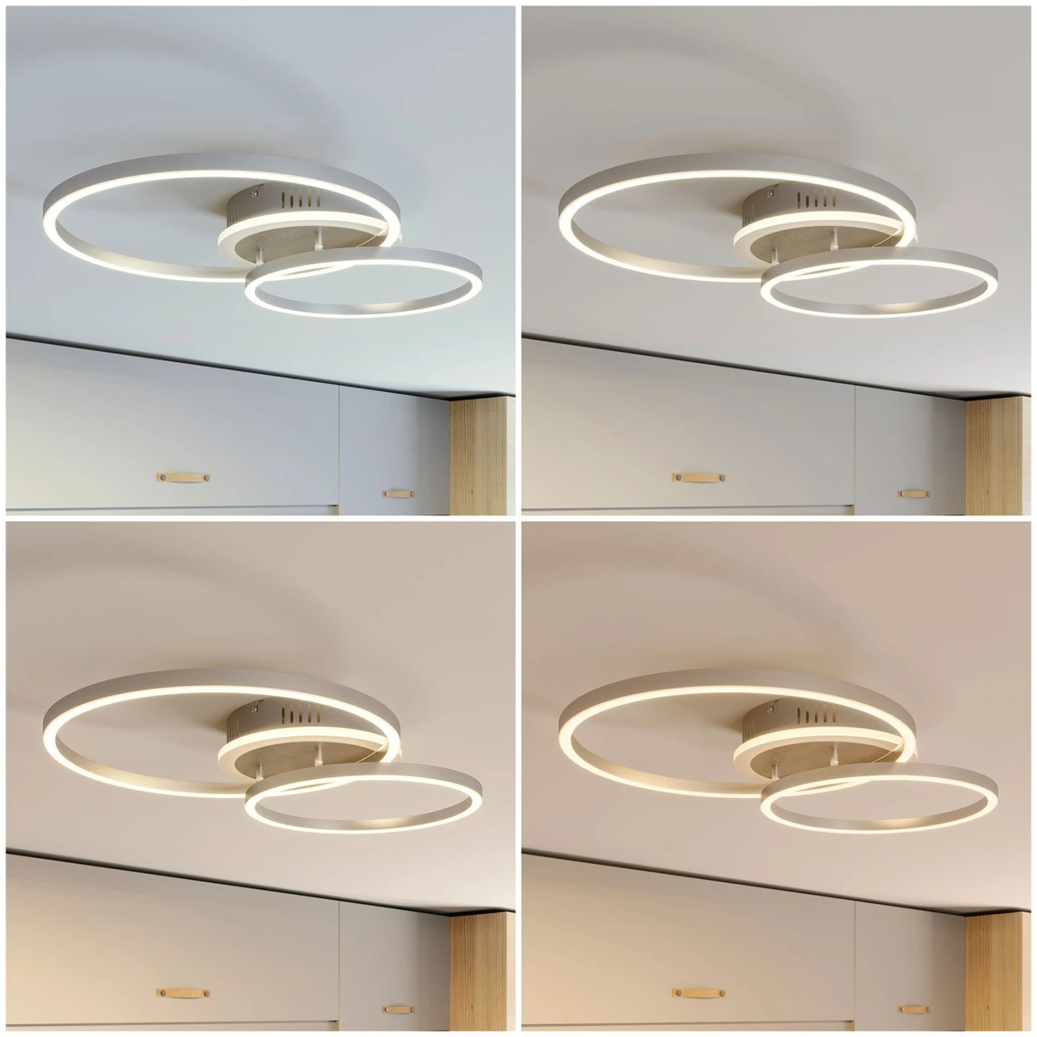 Hier kann gewählt werden: Eine Steuerung mit oder ohne Internet ist bei der modernen LED-Deckenleuchte Edica bequem möglich. Die geometrischen Formen der Leuchte beherbergen effiziente LED-Technik, die dimmbar ist und in verschiedene Weißtöne geschaltet werden kann. Ob warmweißes Licht für den gemütlichen Abend oder konzentrationsförderndes Tageslicht zum Arbeiten, die LED-Deckenleuchte Edica bietet beides. Die Einstellungen sind mit der mitgelieferten Fernbedienung auch ohne Internet-Anschluss möglich. Zudem kann hiermit die Leuchten ein- und aus-, sowie in ein praktisches Nachtlicht geschaltet werden.