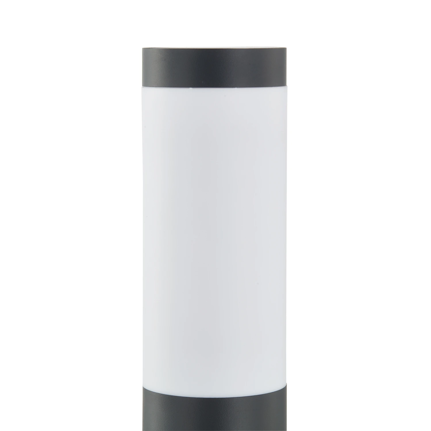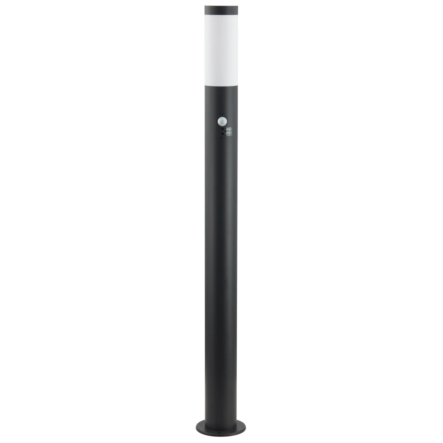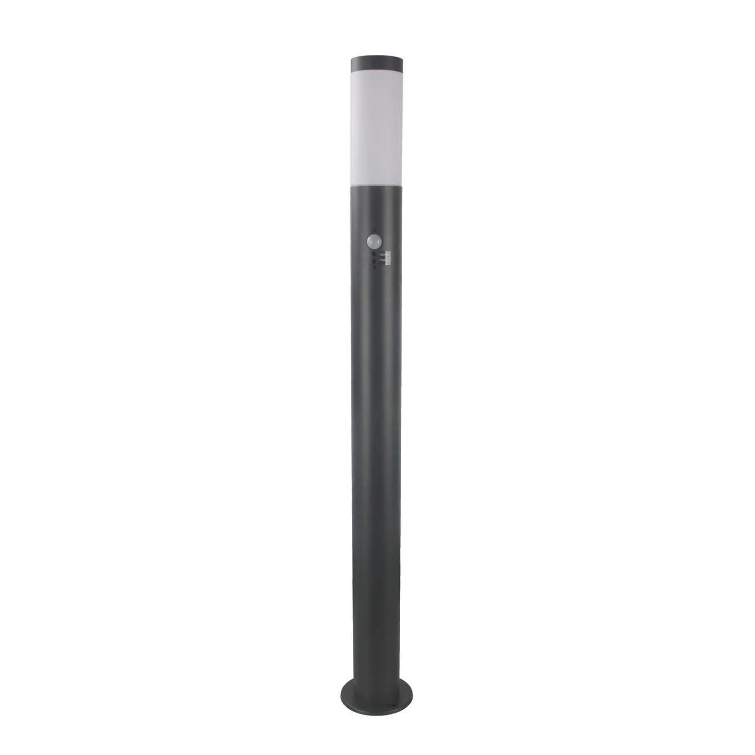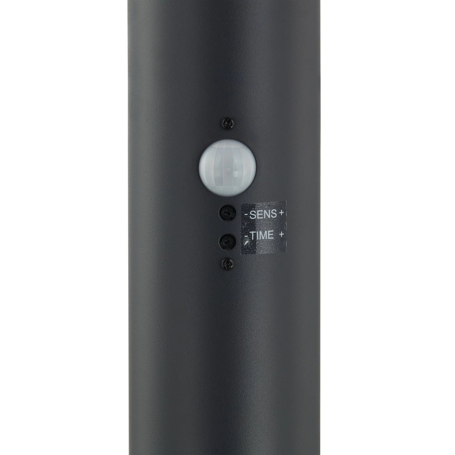 Graue Wegeleuchte Statius mit weißem Kunststoff-Diffusor und praktischem Bewegungssensor
