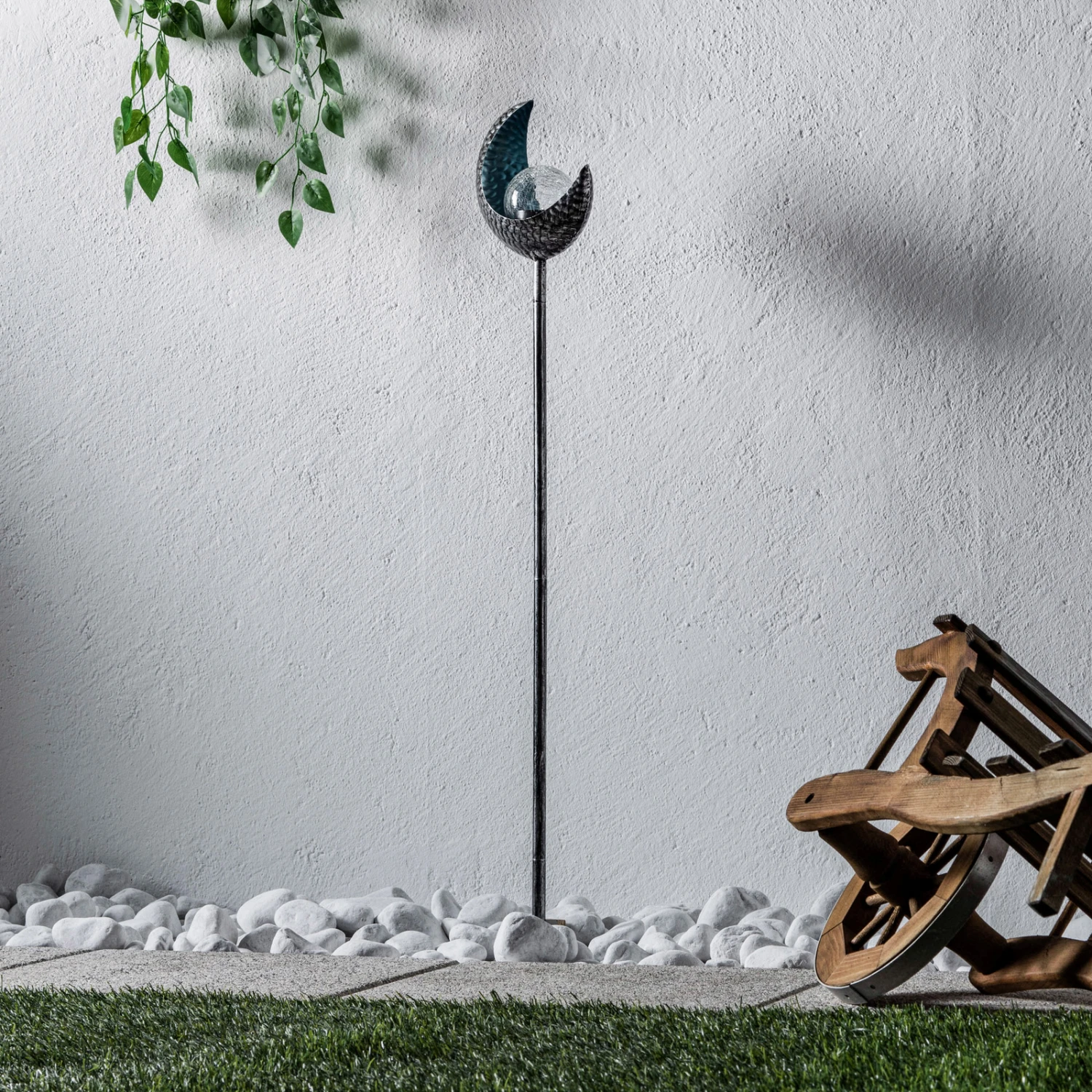 Yonca ist eine besondere LED-Solar-Dekolampe, die dem Ambiente des Außenbereiches das gewisse Etwas verleiht. Sie besteht aus einer schlanken Stange, die einen besonderen Leuchtenschirm trägt. Dieser Schirm besitzt eine Form, die an einen Halbmond erinnert und trägt eine Glaskugel, die mit festverbauten LEDs ausgestattet ist. Das erzeugte Licht ist universalweiß und sorgt für die nötige Helligkeit im Garten oder auf einer Terrasse.