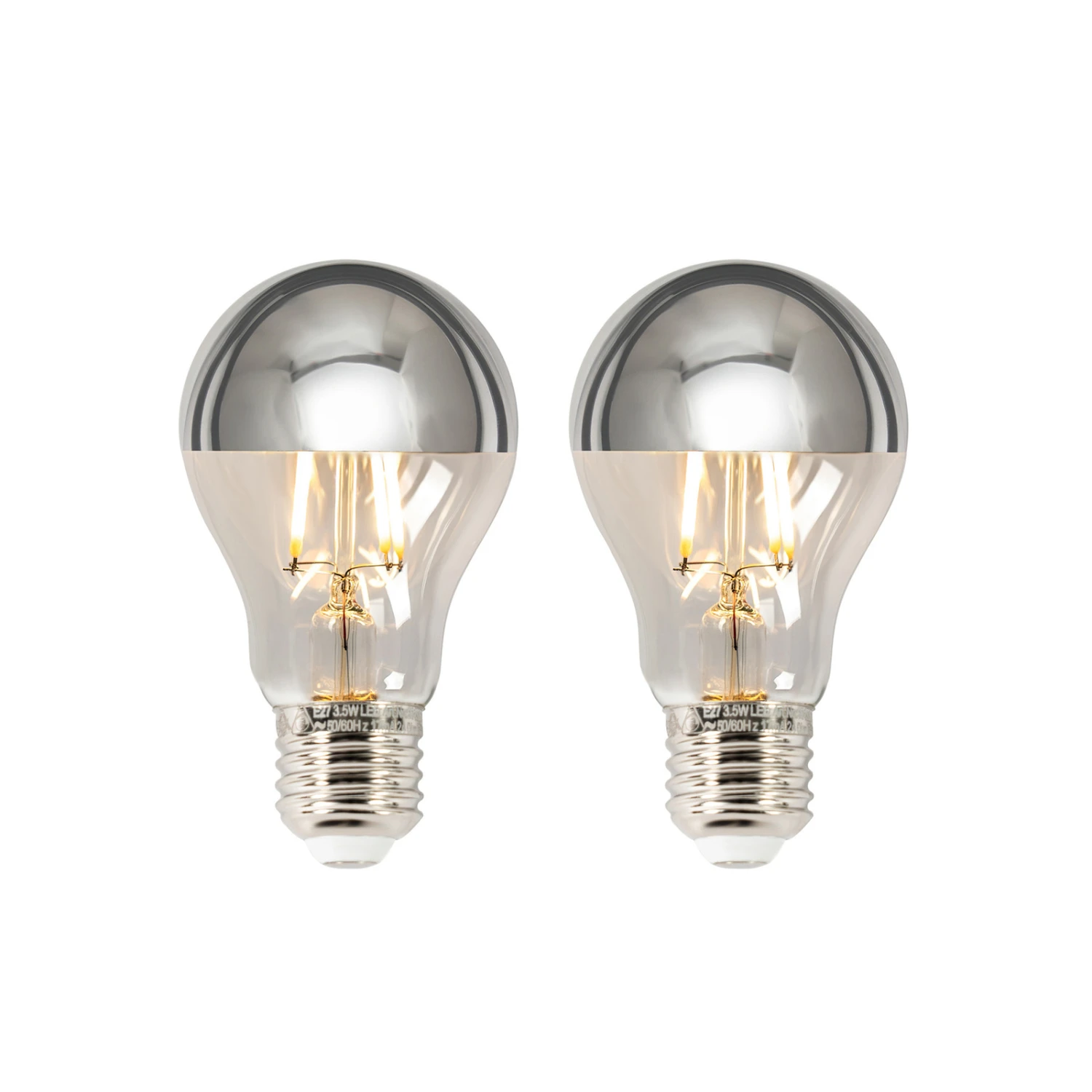 E27 LED-Kopfspiegellampe in Filamentoptik mit silbernem Überzug, 3,5 W, sehr gute Farbwiedergabe – in praktischem 2er-Set