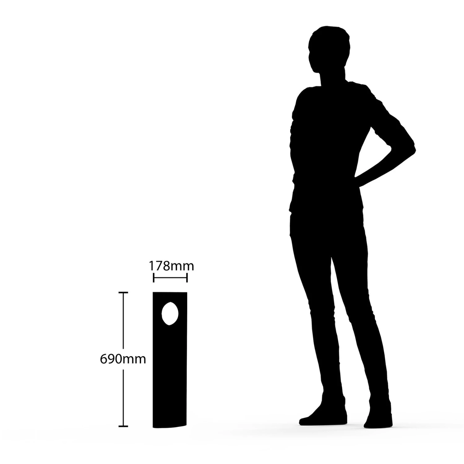 Dieses Beleuchtungsobjekt macht gleich auf den ersten Blick einen markanten Eindruck. Die LED-Wegeleuchte Forama ragt ovalförmig aus dem Boden empor und hat an ihrem oberen Ende eine kreisrunde Öffnung, an deren inneren Rand die LEDs eingebaut sind.