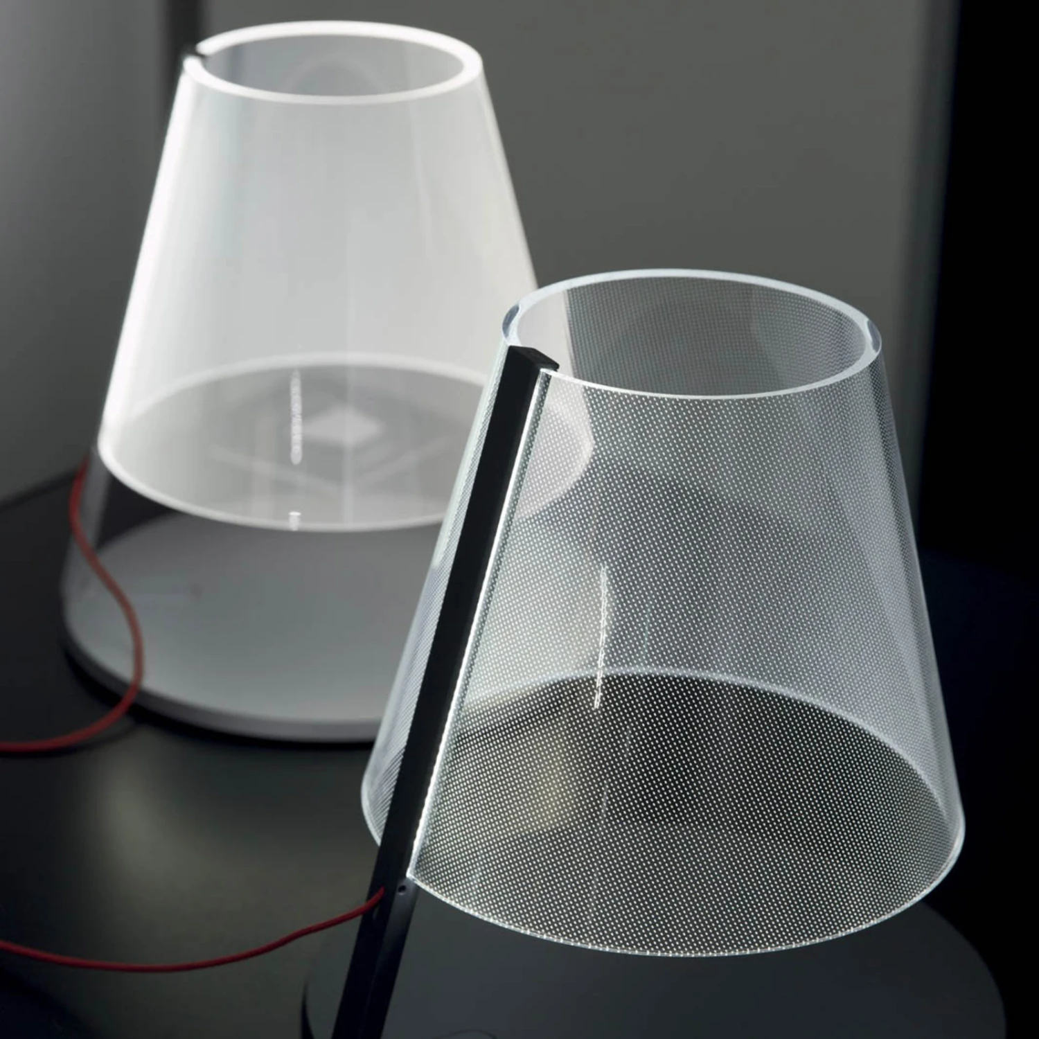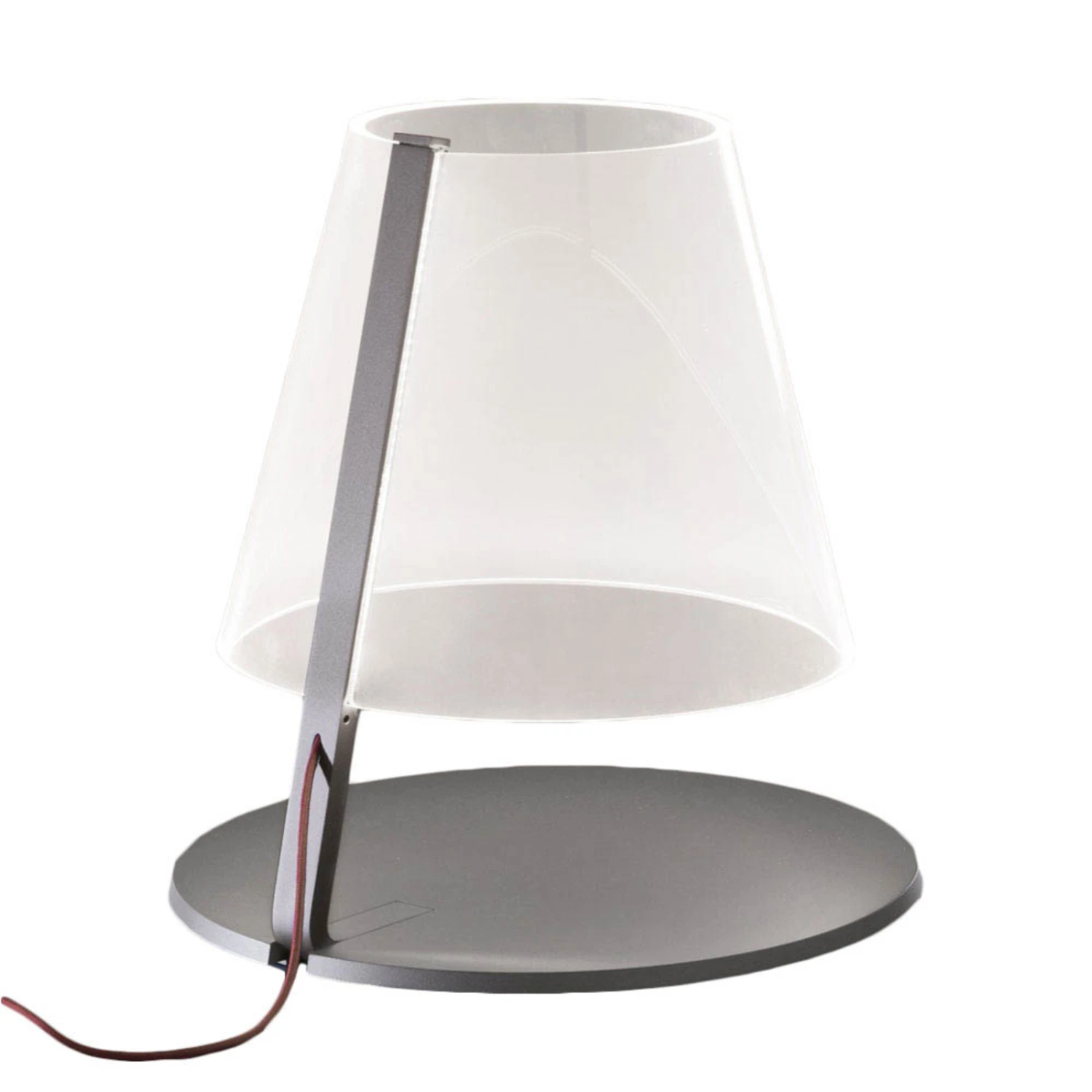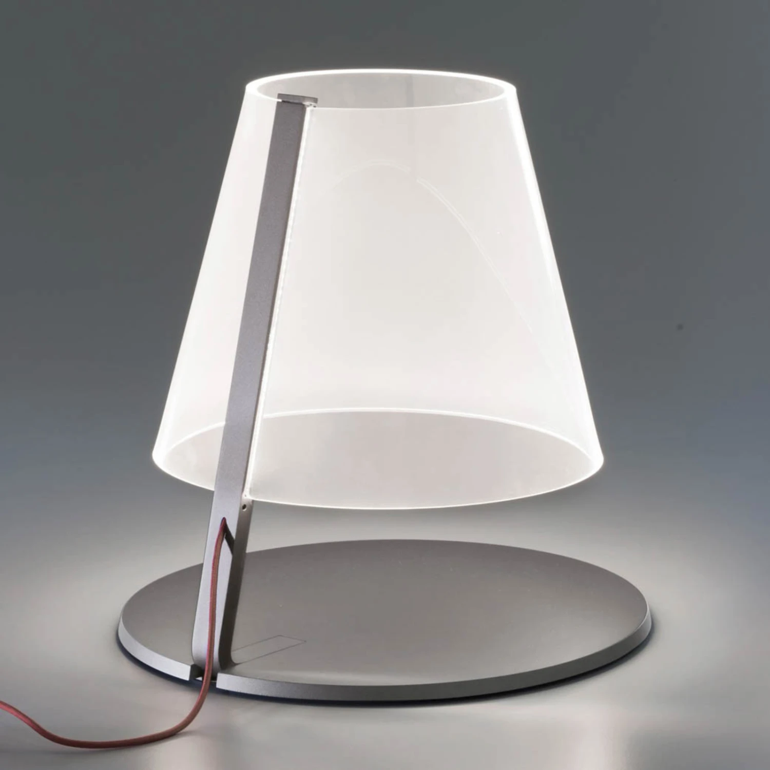 Die LED-Tischleuchte Amarcord, die aus dem Entwurf der beiden Designer Adolini & Simonini Associati stammt, stellt ohne jeglichen Zweifel eine Lichtquelle der besonderen Art dar, denn ihr transparenter Diffusorschirm aus Methacrylat, der fast magisch über dem Leuchtenfuß zu schweben scheint und lediglich mit einem schmalen Arm am Leuchtenfuß befestigt ist, ist in ausgeschaltetem Leuchtenzustand fast völlig unsichtbar, so dass man beim Betrachten schnell in Verwunderung ausbricht.