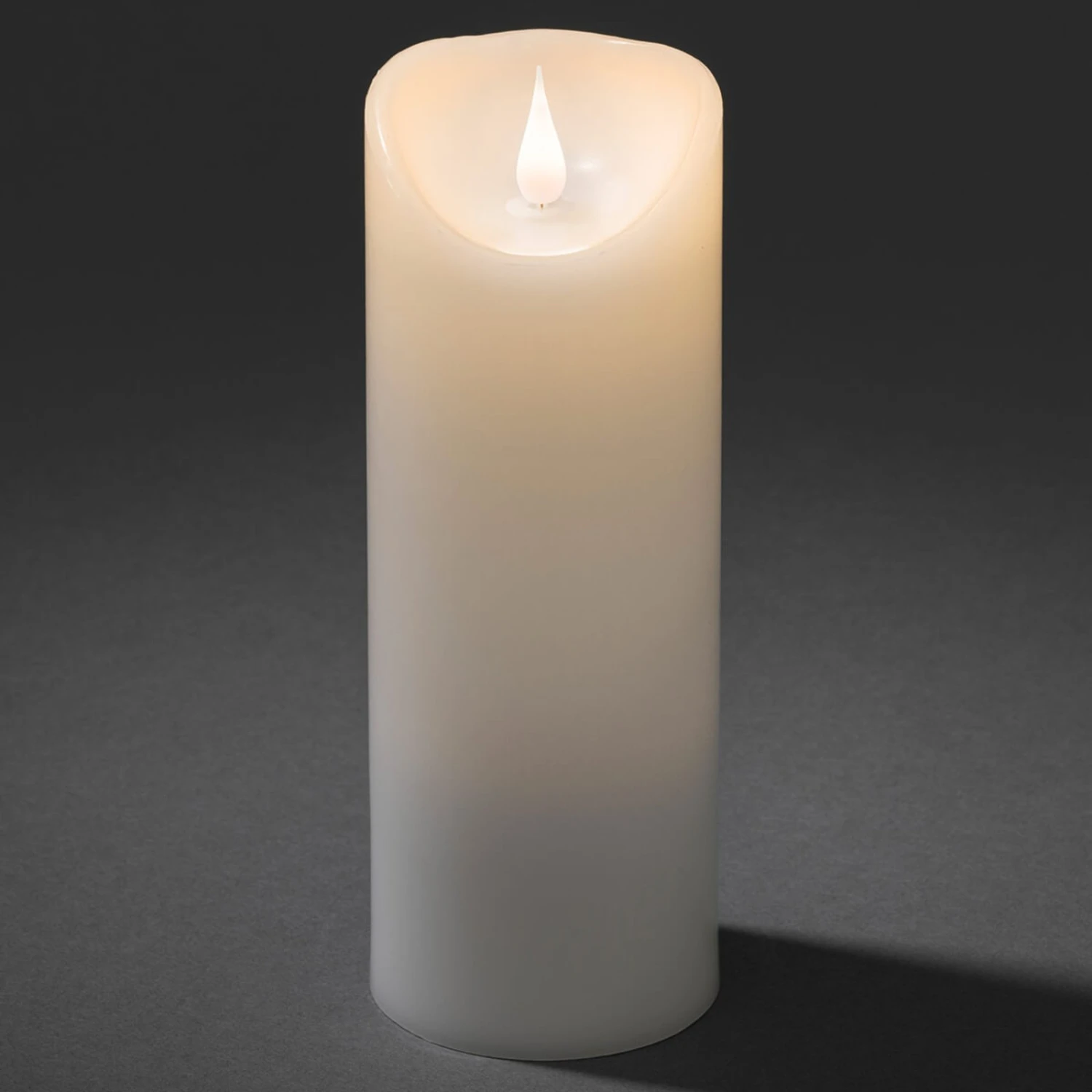 Der Korpus der LED-Kerze ist aus Echtwachs gestaltet, es ist außerdem eine Kerzenflamme mit 3D-Effekt integriert, d. h. die Flamme flackert wie bei einer Kerze mit echtem Feuer hin und her. Über einen integrierten Timer kann die Leuchtdauer wahlweise auf vier oder auf acht Stunden voreingestellt werden. Diese Kerze ist aufgrund ihrer lebensechten Erscheinung eine tolle Alternative zu echtem Kerzenfeuer und kann auch überall dort genutzt werden, wo kein offenes Feuer gestattet ist, wie z. B. in Kitas oder Seniorenheimen. Die LED-Kerze Echtwachs wird mit zwei C-Batterien betrieben. Die Batterien gehören nicht zum Lieferumfang, sie können über das Zubehör bestellt werden.