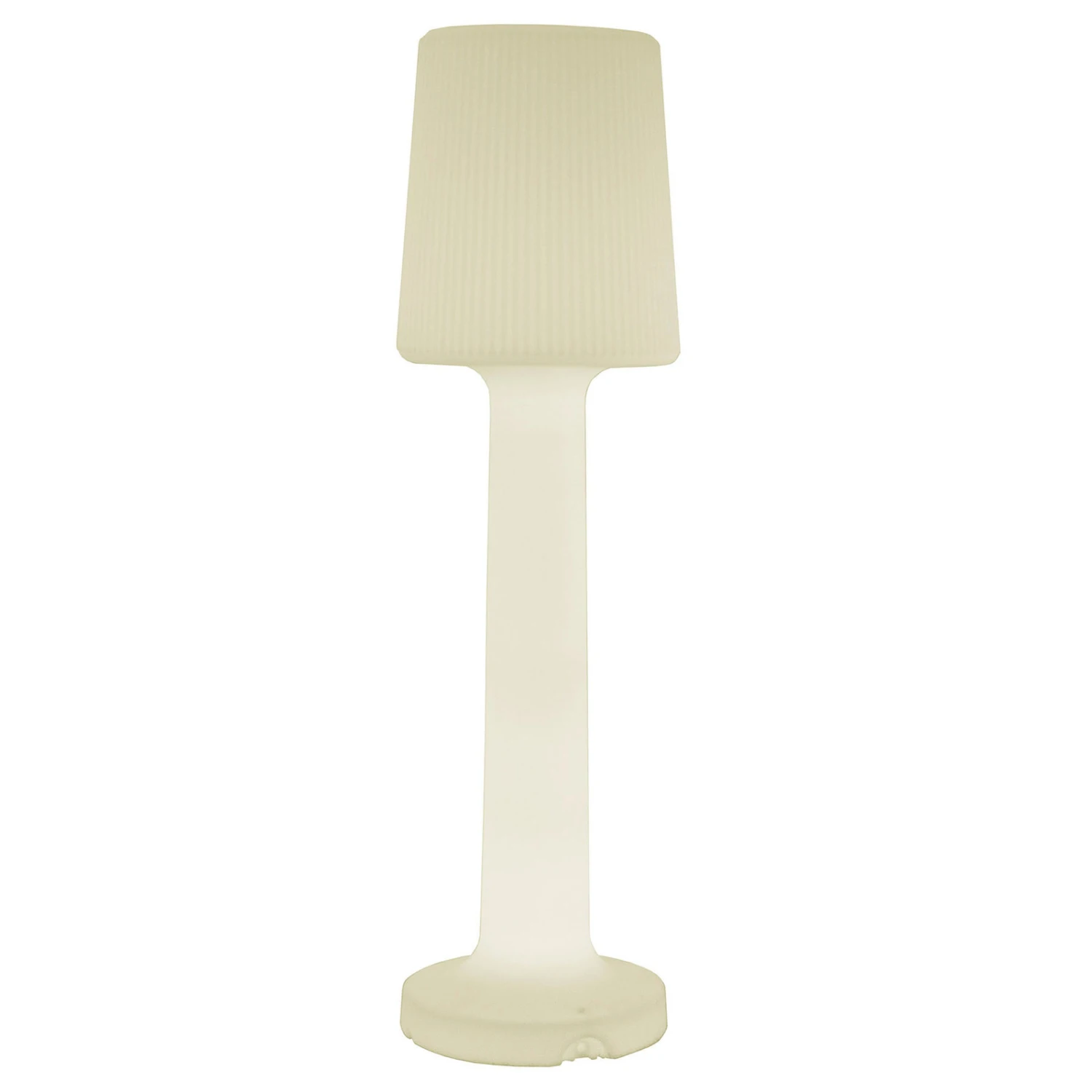 Komplett aus uv-beständigem und robustem Polyethylen wurde die Stehleuchte Carmen gefertigt, so dass sie sich neben der Verwendung innen auch für den Außenbereich eignet (Schutzart IP65). Eine besondere Raffinesse erhält die Leuchte mit ihrem schlanken Fuß durch den gerillten Leuchtenschirm, durch den er sich vom Gestell optisch abhebt.