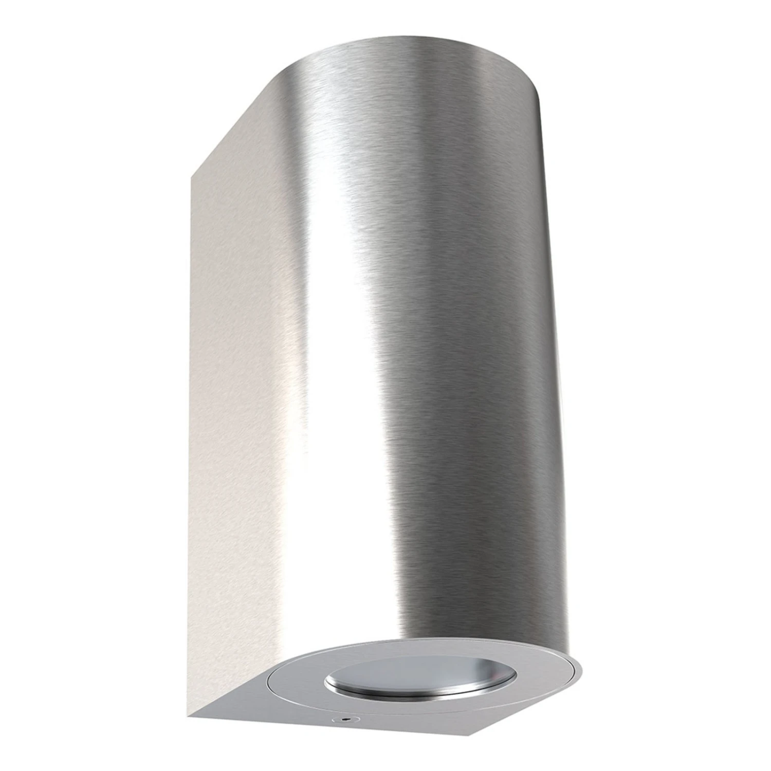 Die aus Aluminium-Spritzguss bestehende Außenwandleuchte Canto Maxi 2 ist eine Kreuzung aus Quader und Zylinder. So zurückhaltend und schlicht die Formgebung wirkt, so dekorativ kann das Licht der Wandleuchte wirken. Als Leuchtmittel sind insgesamt zwei GU10-Lampen je nach Wahl geeignet.