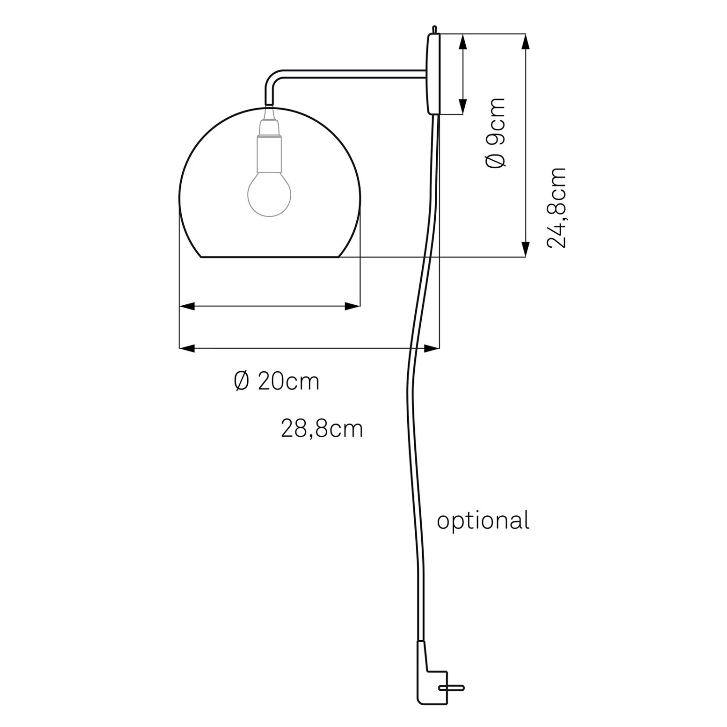 Tilt Globe Wall – funktionale Wandleuchte mit rotem Kabel und Stecker